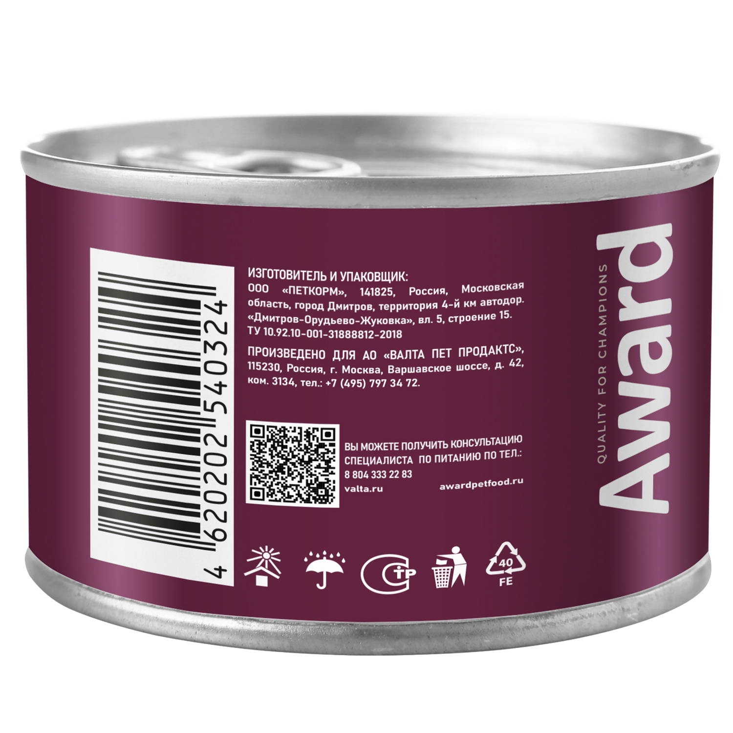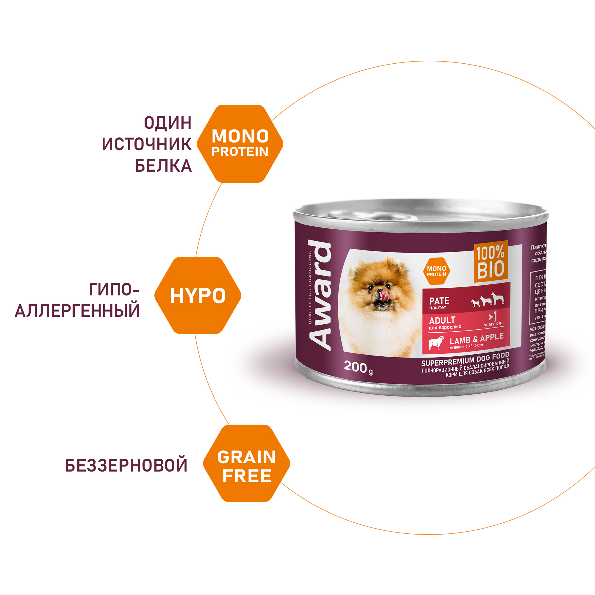 Влажный корм AWARD для взрослых собак паштет из ягненка с яблоком 200г