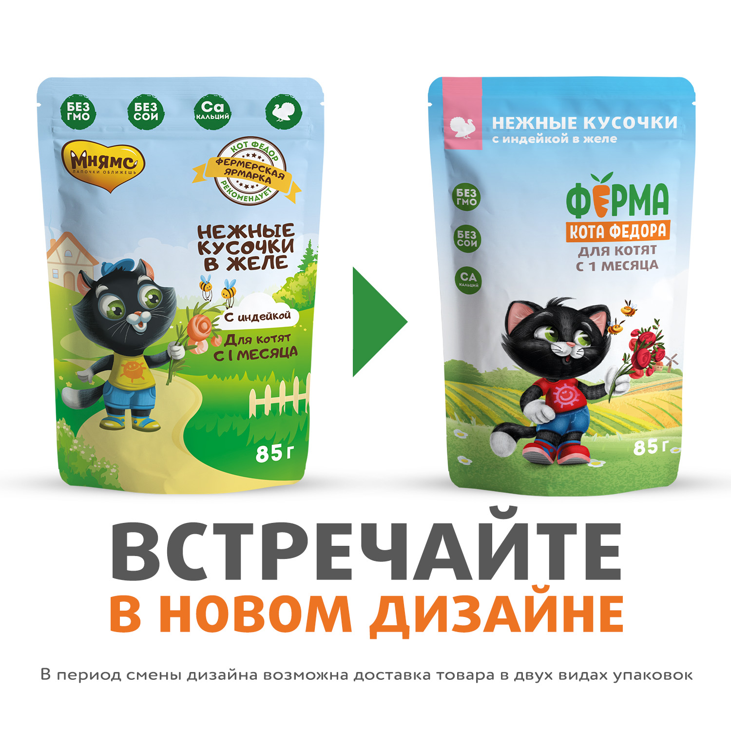 Влажный корм Ферма кота Фёдора нежные кусочки в желе с индейкой для котят 85г