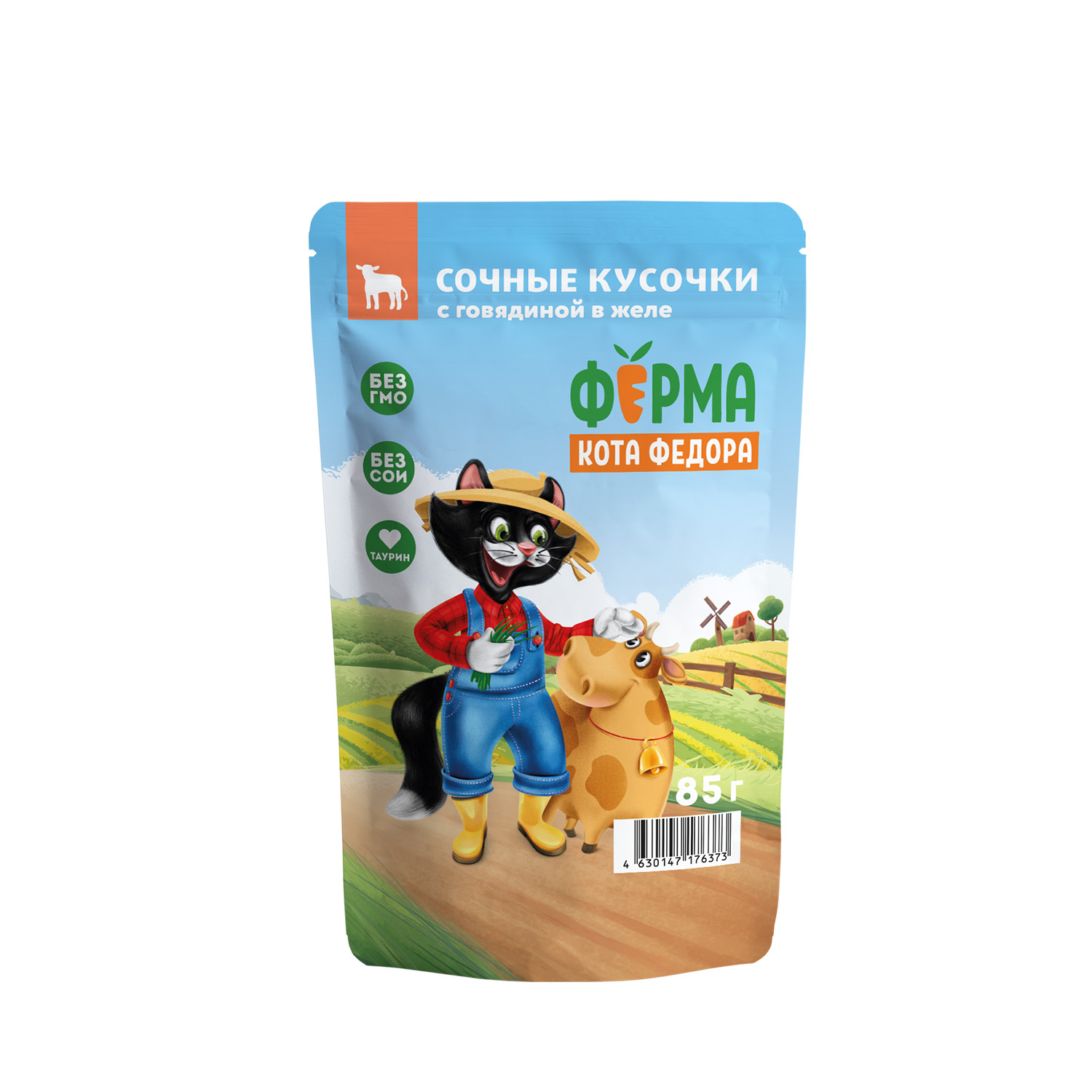 Влажный корм Ферма кота Фёдора сочные кусочки в желе для кошек с говядиной 85г