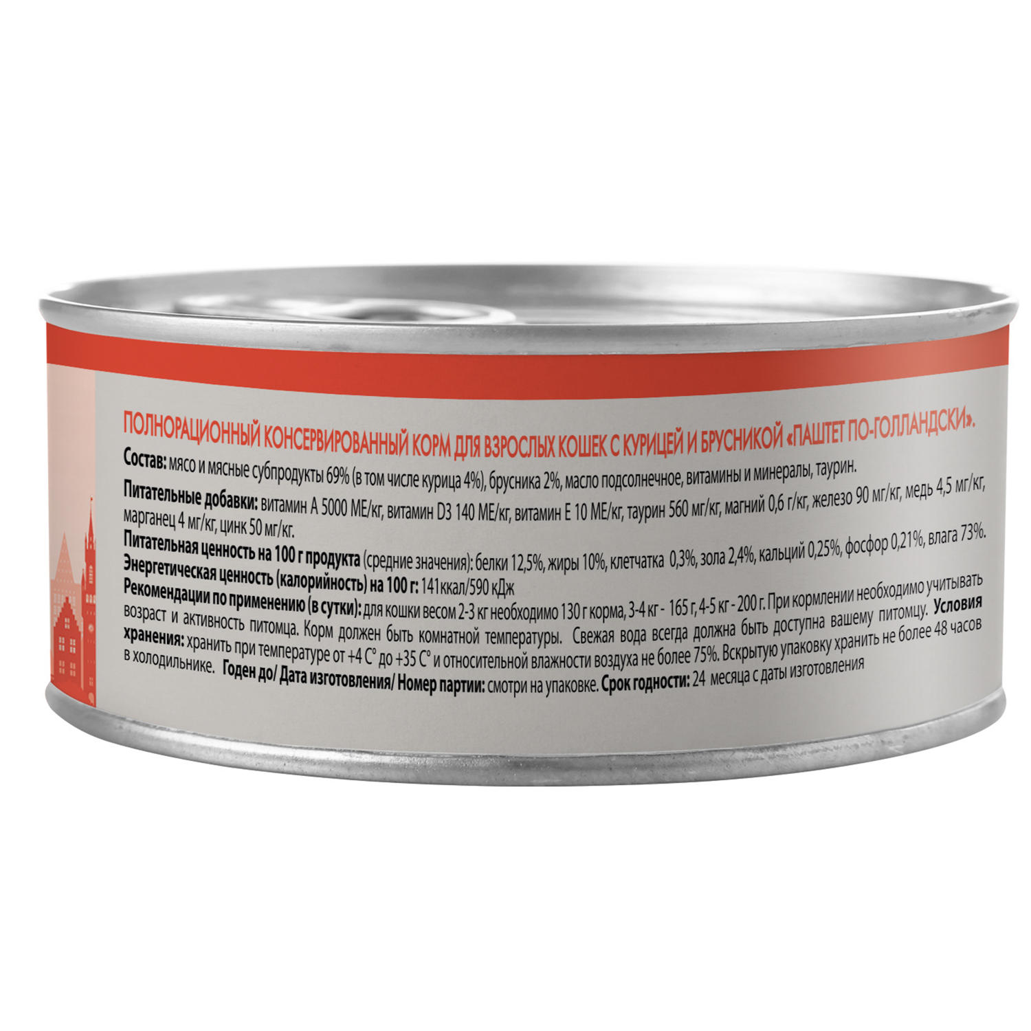 Полнорационный сбалансированный влажный корм с курицей и брусникой для кошек старше 12 месяцев, созданный по мотивам блюд высокой кухни. "Паштет по-голландски" содержит высокое количество животного белка (69%), бруснику, таурин, а также все необходимые витамины и минералы для поддержания здоровья и активности кошки на протяжении всей ее жизни.