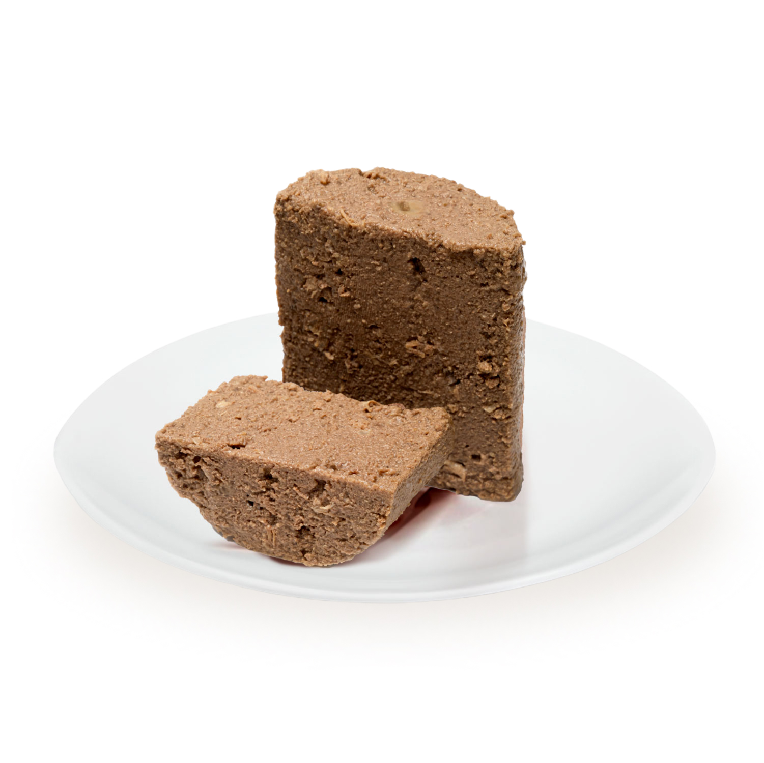 Состав: ягнёнок 65%, картофель 2%, томаты 2%, витамины, минеральные вещества, свекловичная клетчатка, льняное масло 0,1%.Питательная ценность на 100 г продукта (средние значения): белок 11,6%, жир 7,8%, клетчатка 1%, зола 2,2%, влага 75%, витамин А 2 500 МЕ/кг, витамин Е 15 МЕ/кг, витамин D 130 МЕ/кг.