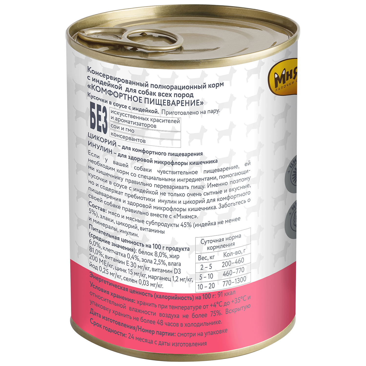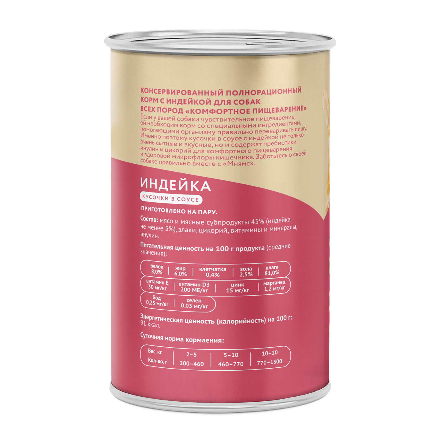 Влажный корм Мнямс На каждый день Кусочки в соусе с индейкой для собак «КОМФОРТНОЕ ПИЩЕВАРЕНИЕ" 400 г