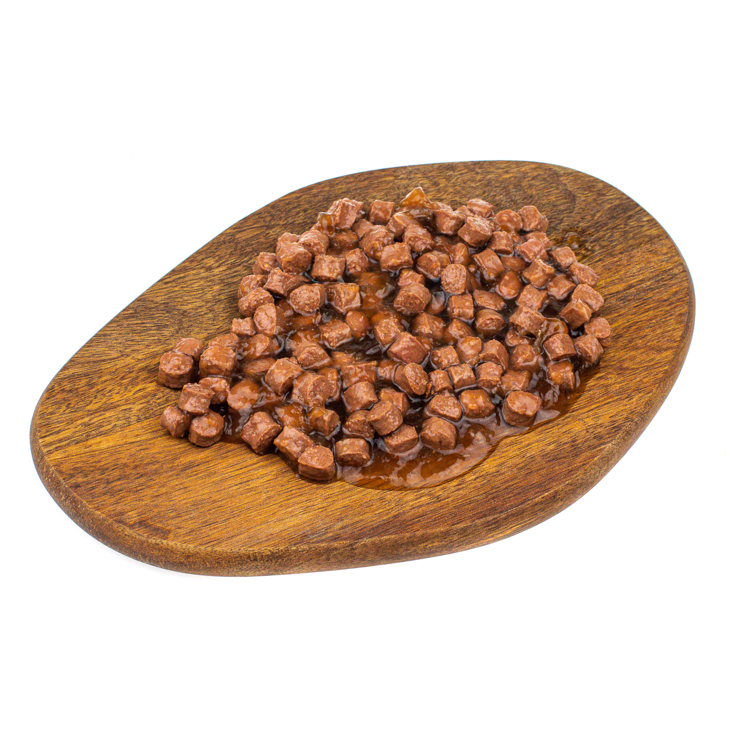 Любознательным и подвижным щенкам на этапе роста особенно нужен сбалансированный и здоровый рацион. Кусочки в соусе с телятиной – такие мясные и такие сытные – помогут малышу всегда быть в активной форме, расти сильным и крепким и дарить счастье всем вокруг. Заботьтесь о своем щенке правильно вместе с «Мнямс».
