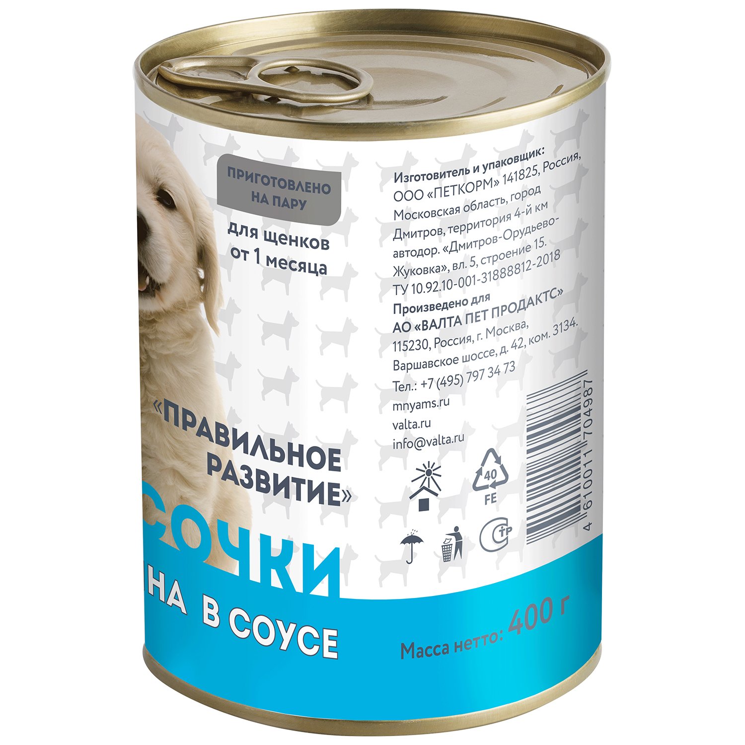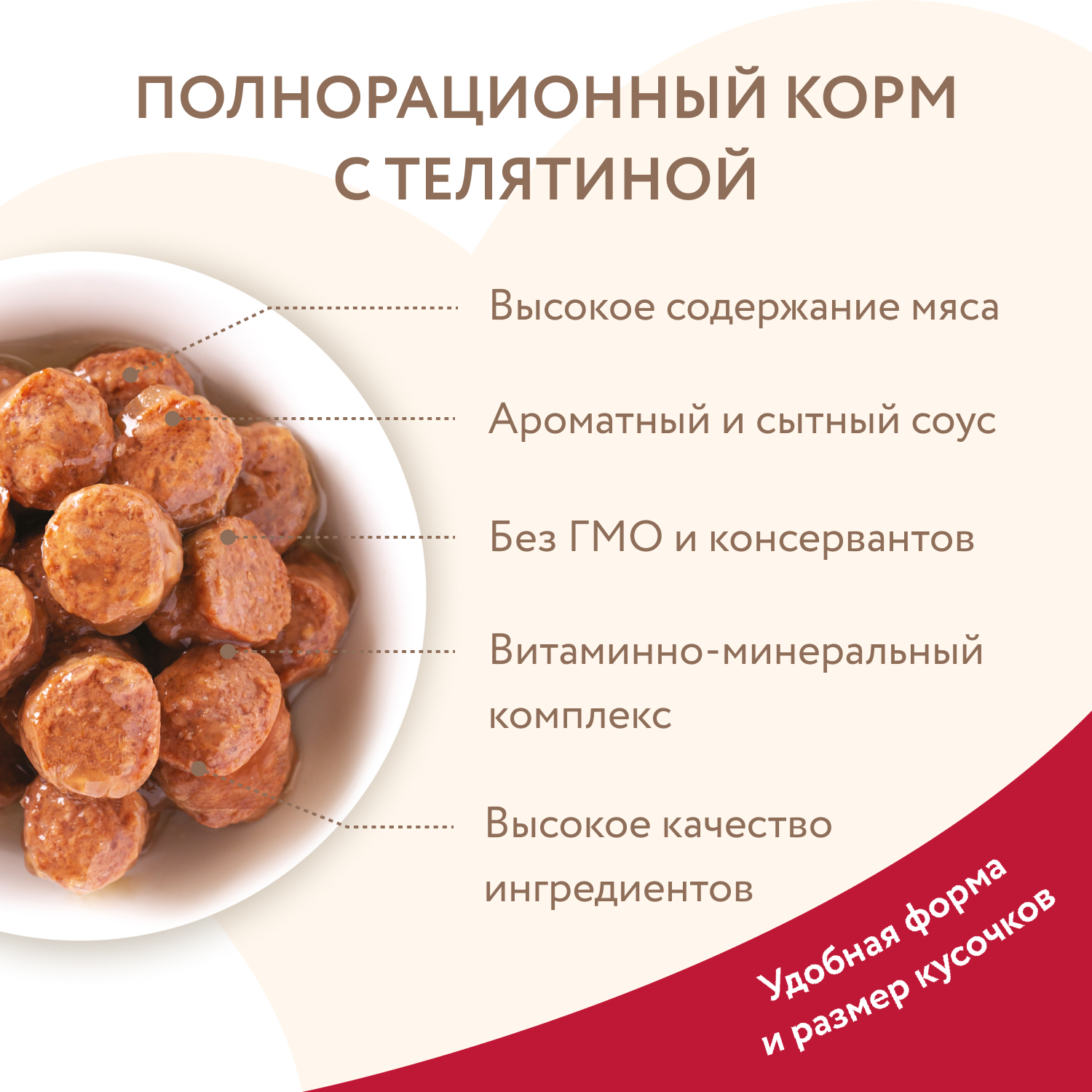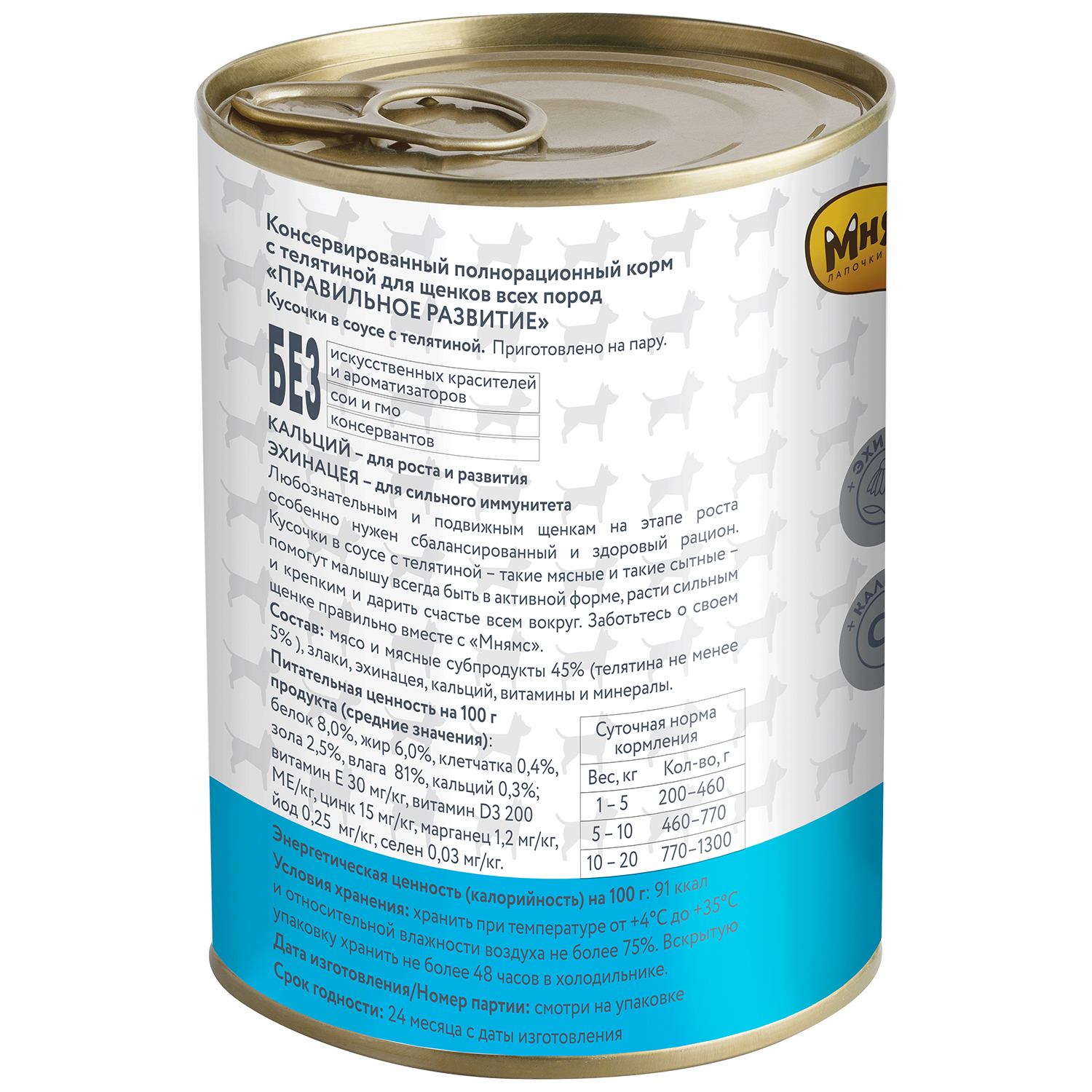 Влажный корм Мнямс На каждый день Кусочки в соусе с телятиной для щенков «ПРАВИЛЬНОЕ РАЗВИТИЕ» 400 г