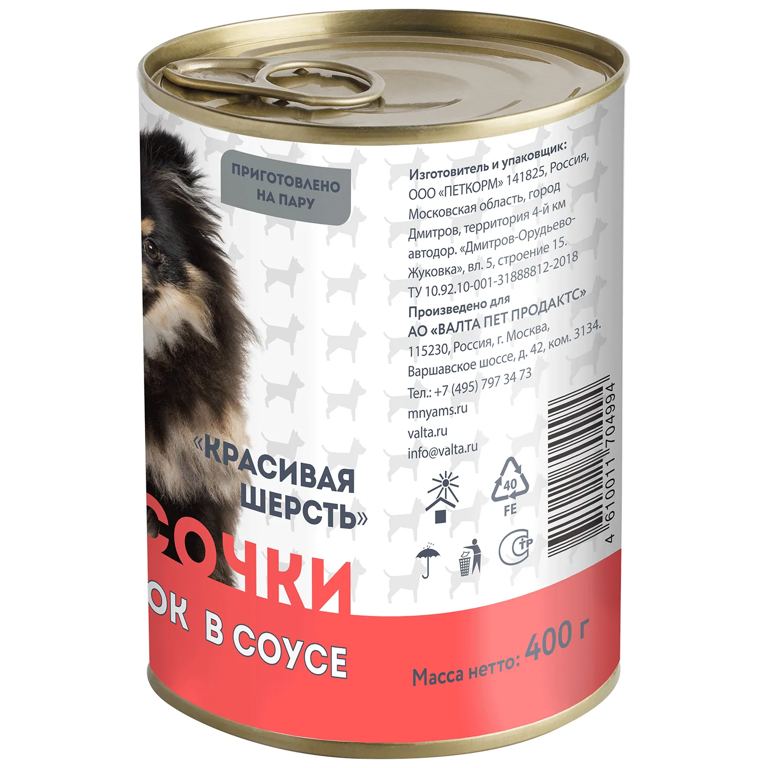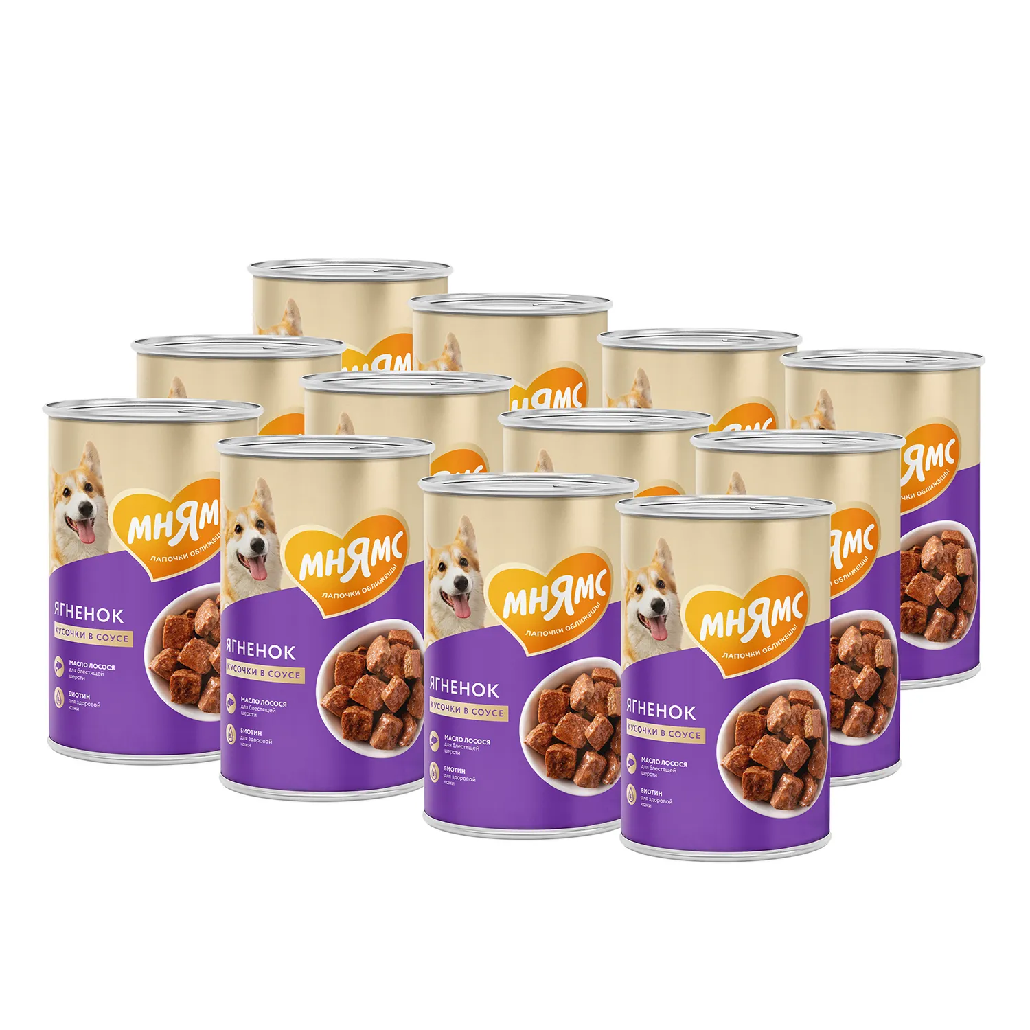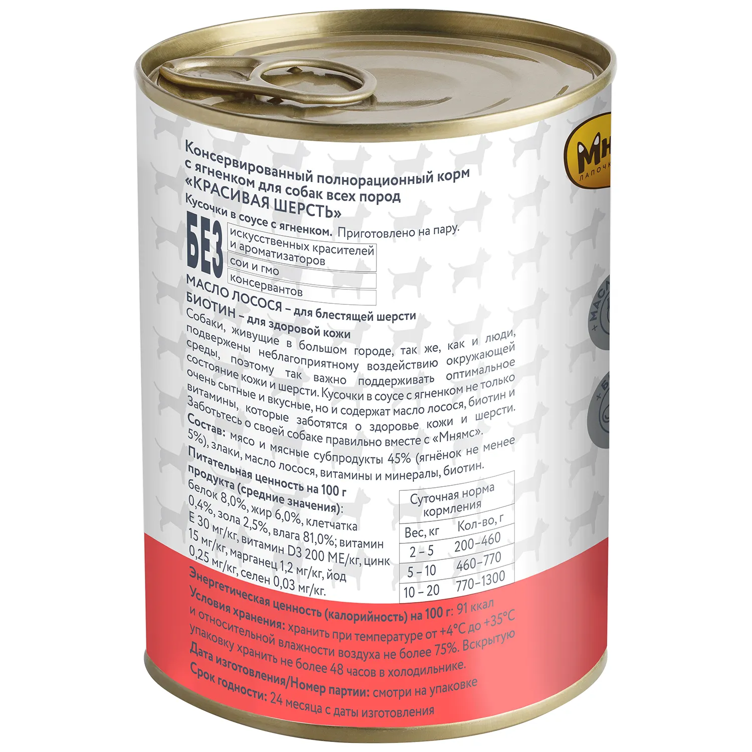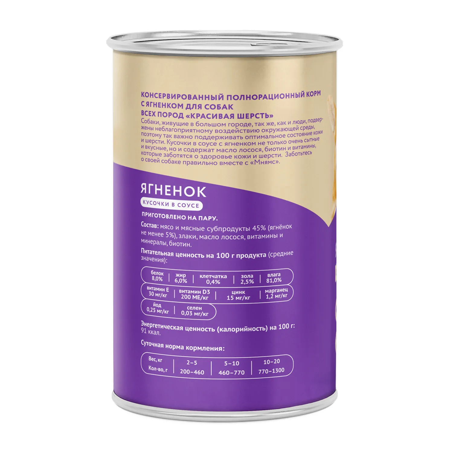 Влажный корм Мнямс На каждый день Кусочки в соусе с ягненком для собак «КРАСИВАЯ ШЕРСТЬ» 400 г