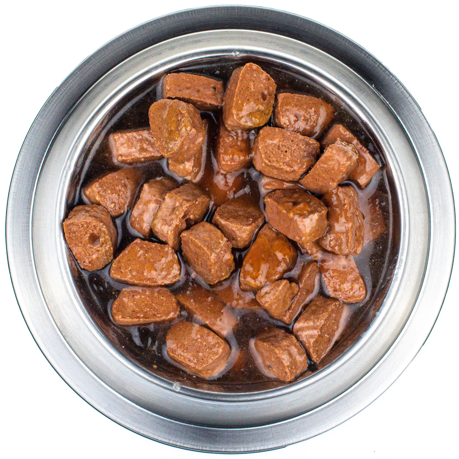 Состав: мясо и мясные субпродукты 45% (ягнёнок не менее 5% ), злаки, масло лосося, витамины и минералы, биотин.