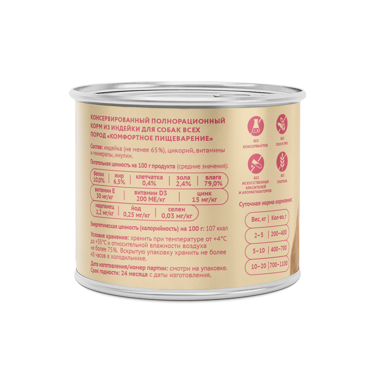 Состав: индейка (65%), цикорий, витамины и минералы, инулин.