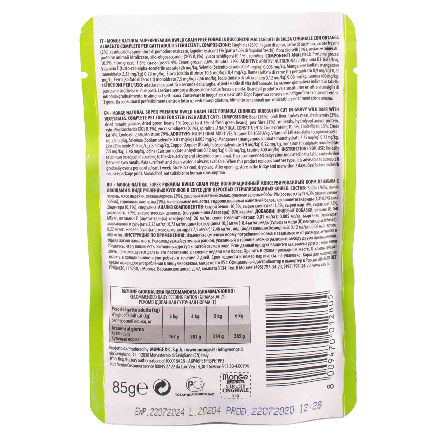 Monge (Монж) Cat BWild GRAIN FREE (холистик) полнорационные беззерновые паучи из мяса кабана с овощами для стерилизованных кошек и кастрированных котов 85 г.