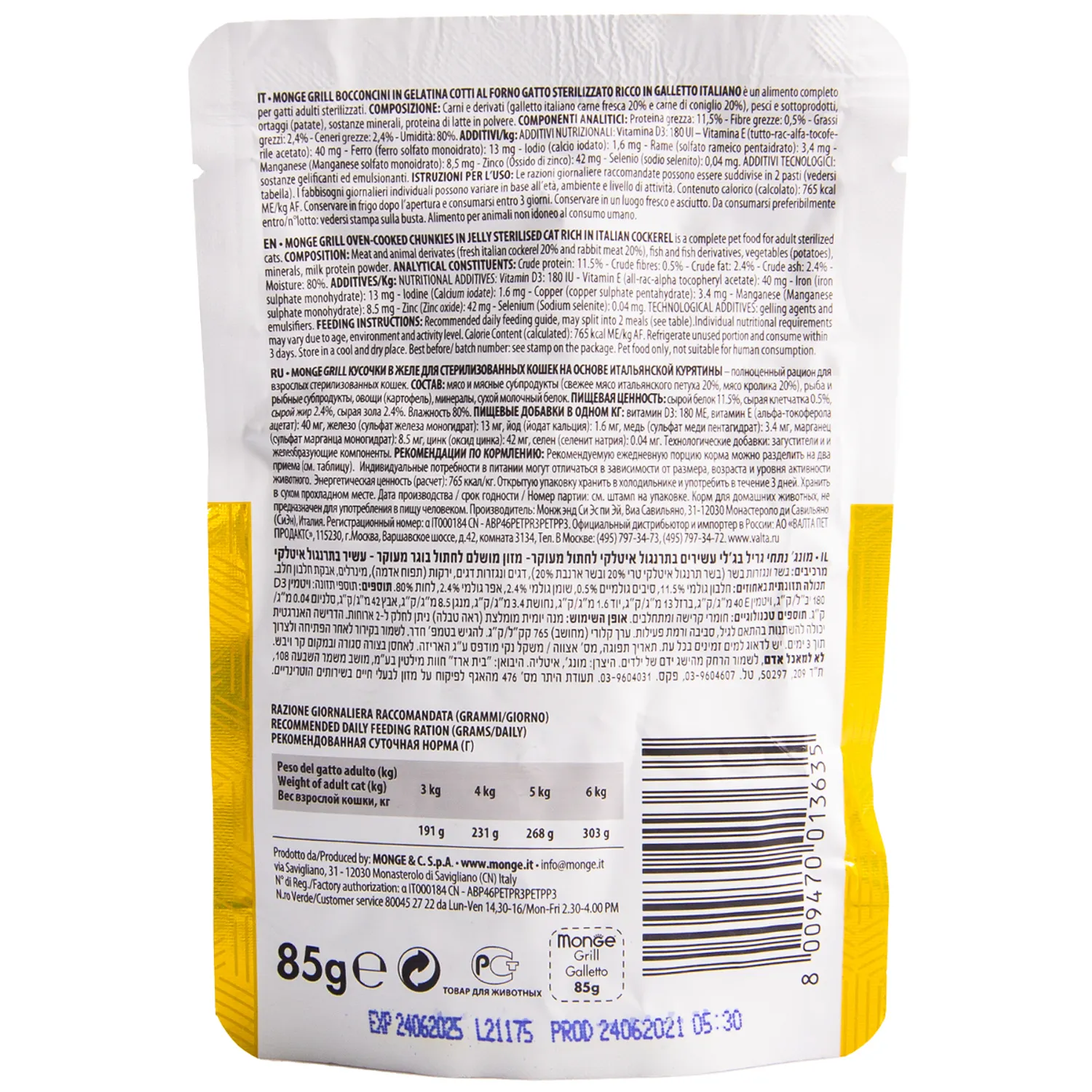 Monge (Монж) Cat Grill полнорационные беззерновые паучи с итальянской курицей для стерилизованных кошек и кастрированных котов 85 г.
