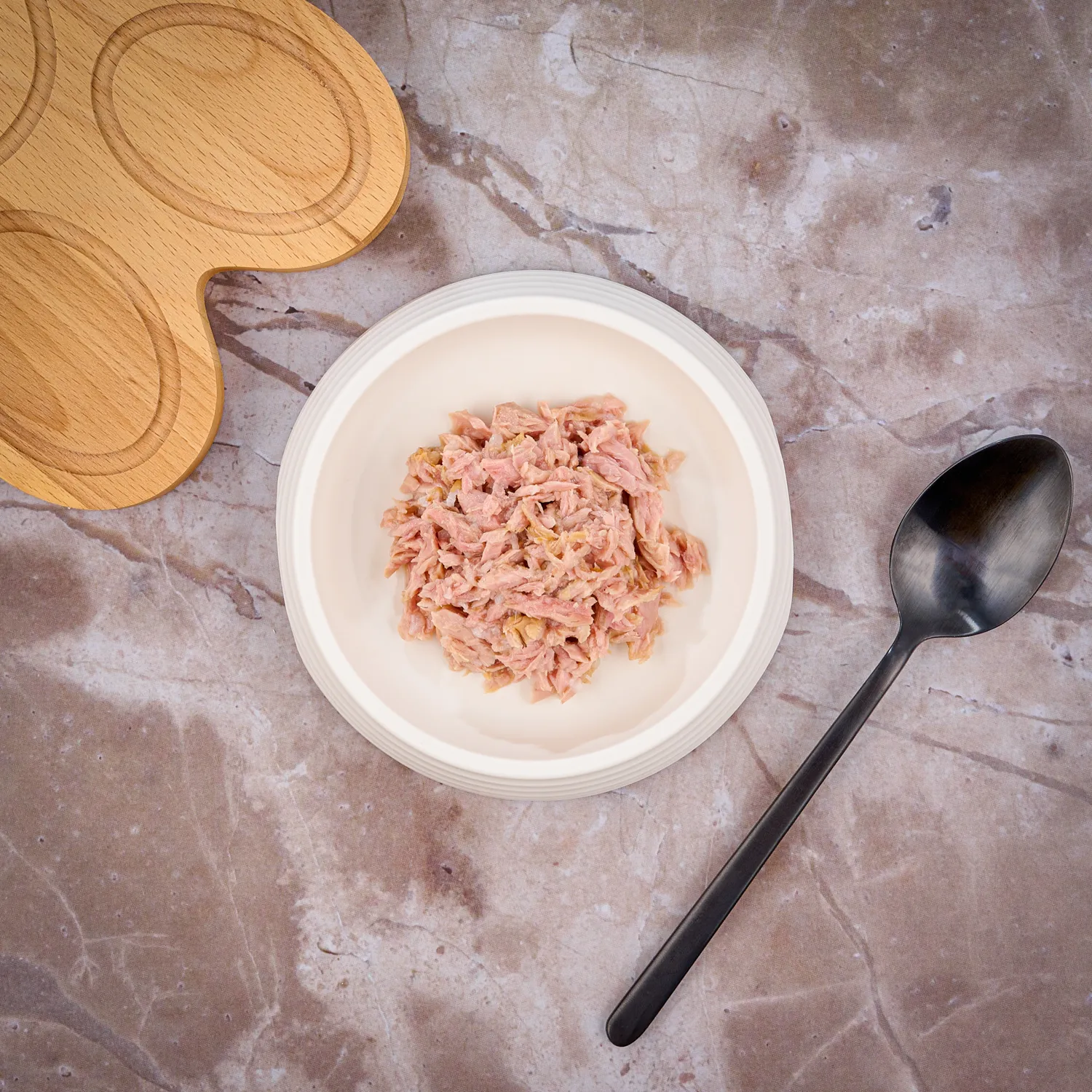 Настоящий деликатес для четвероногих гурманов, приготовленный на пару из высококачественных продуктов на основе тунца, который является источником белка высокой пищевой ценности.