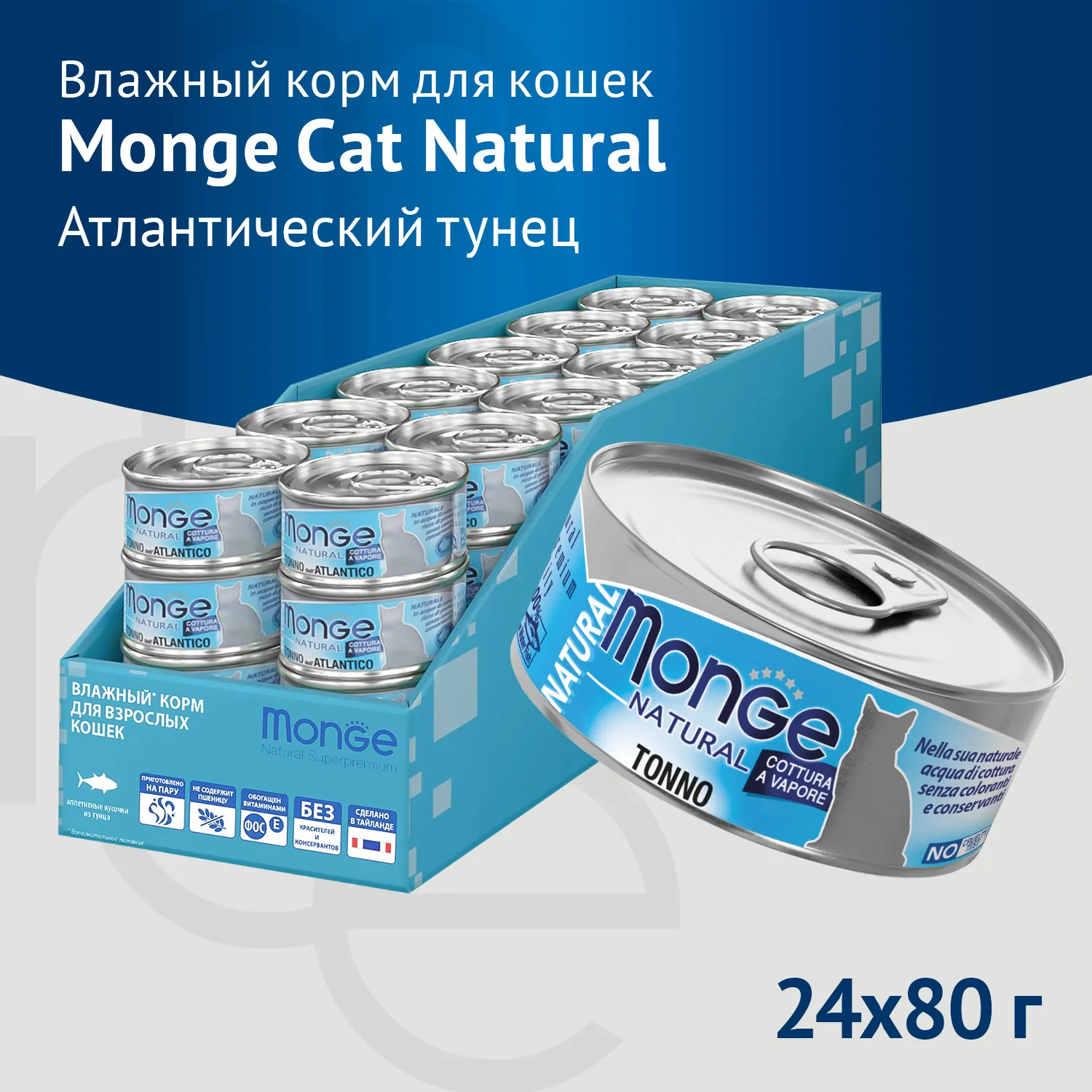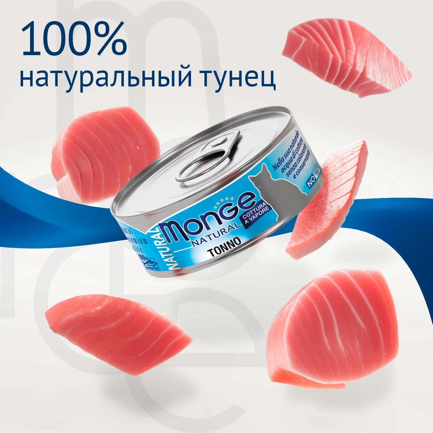 Влажный корм Monge Cat Natural для кошек, из атлантического тунца, консервы 80 г
