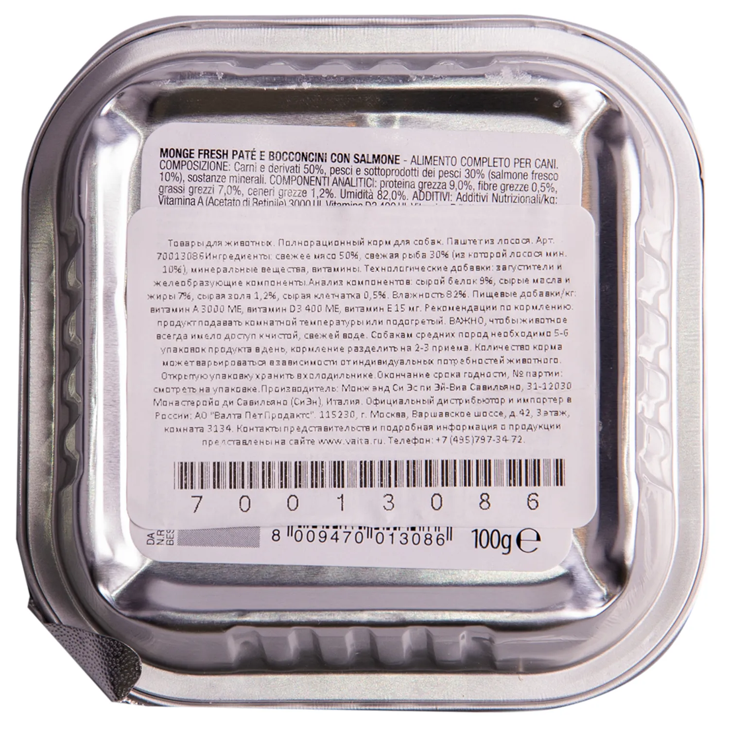 Влажный корм Monge Dog Fresh для собак, с лососем, консервы 100 г