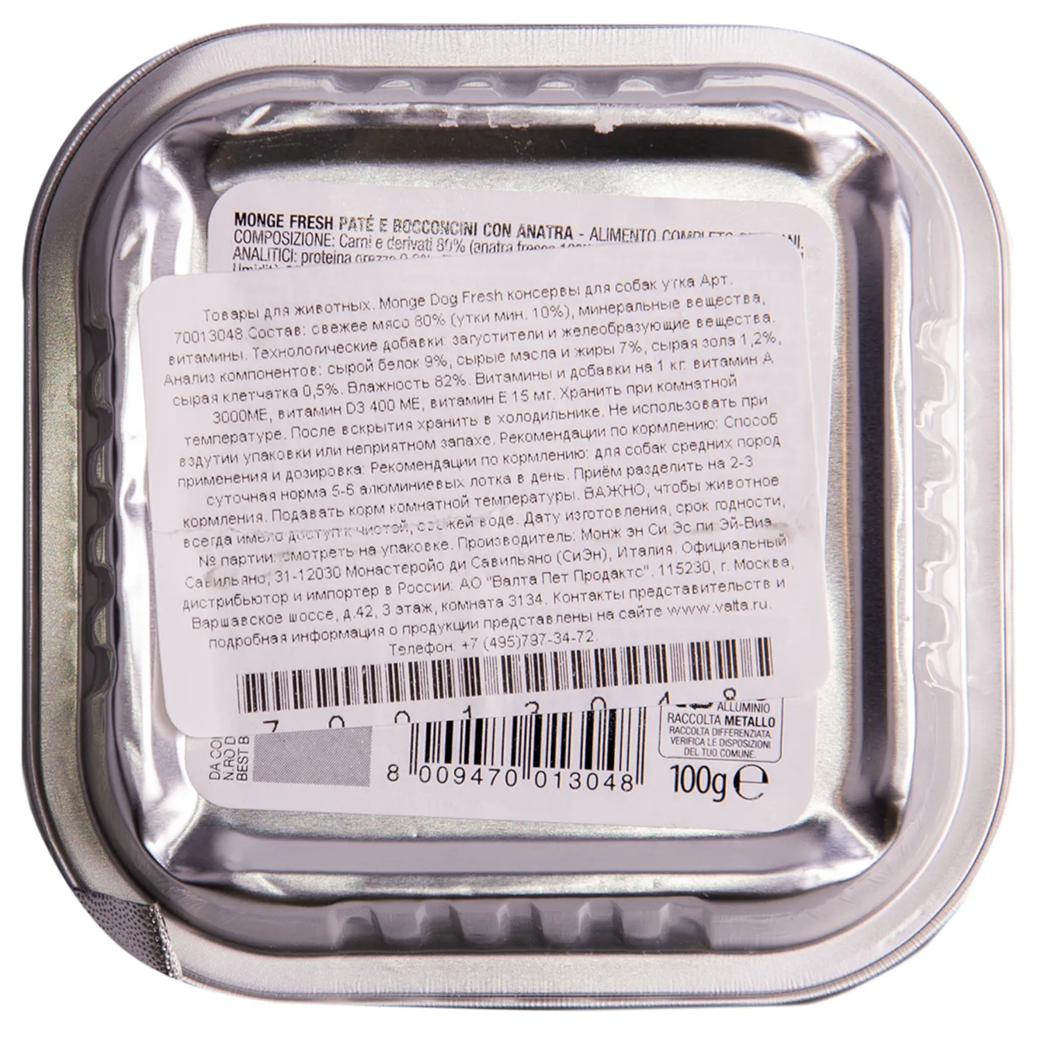 Влажный корм Monge Dog Fresh для собак, с уткой, консервы 100 г