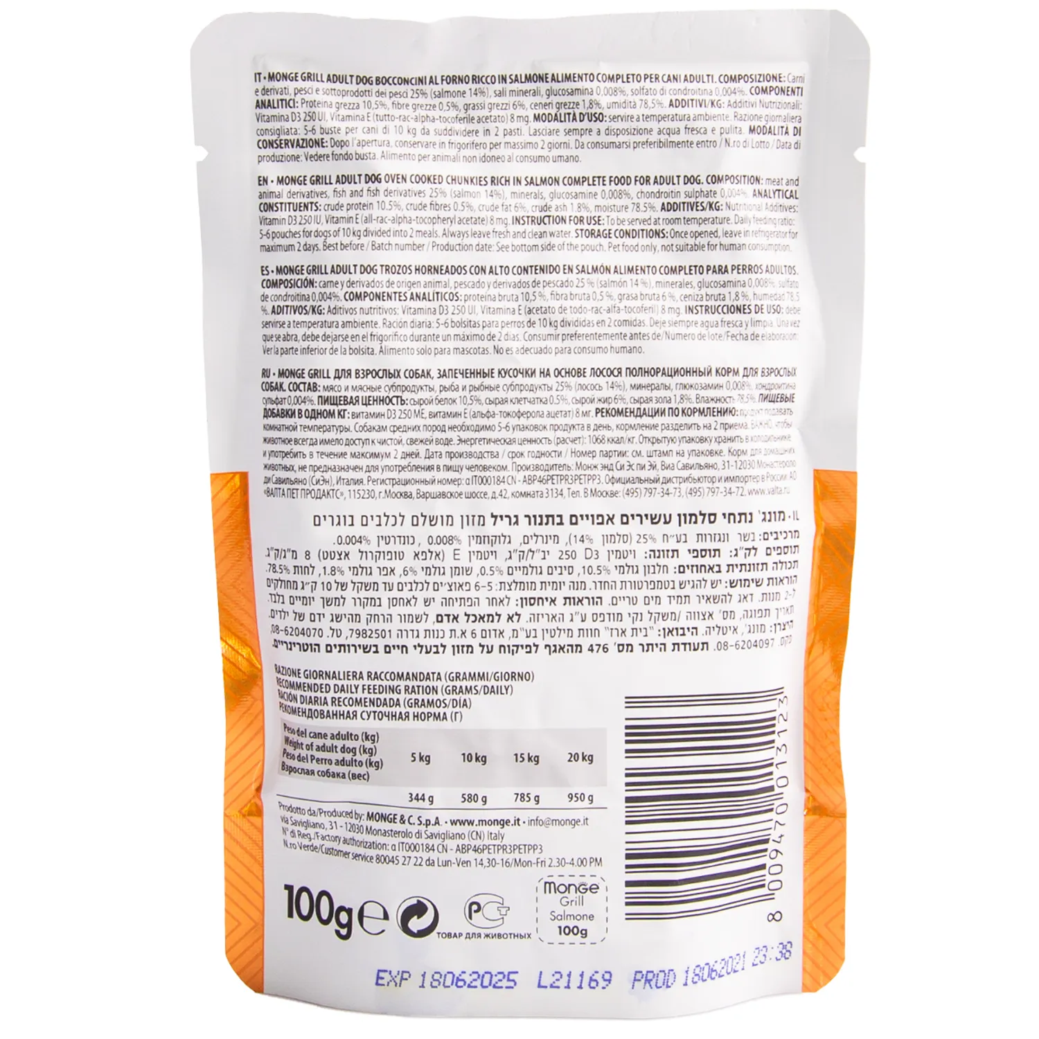 Влажный корм Monge Dog Grill для собак с лососем, паучи 100 г