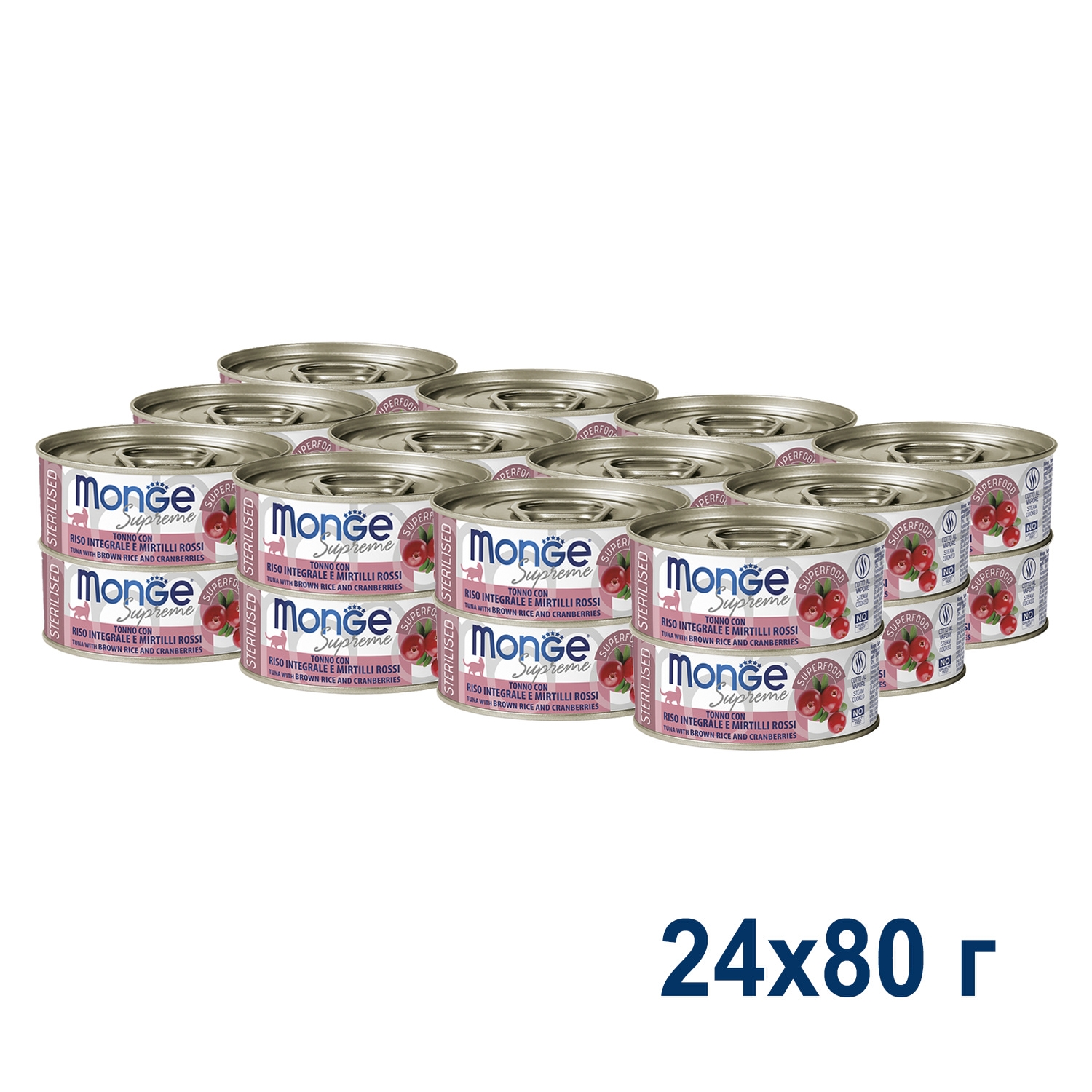 Влажный корм Monge Supreme sterilized для стерилизованных кошек из тунца с бурым рисом и клюквой, консервы 80 г