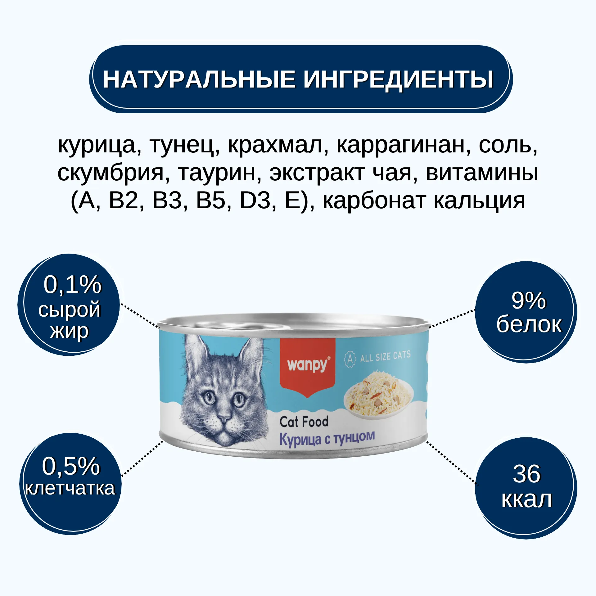 Wanpy Cat консервы для кошек "Курица с тунцом" - это высококачественный сбалансированный корм, который обеспечит вашего питомца необходимыми витаминами и минералами.