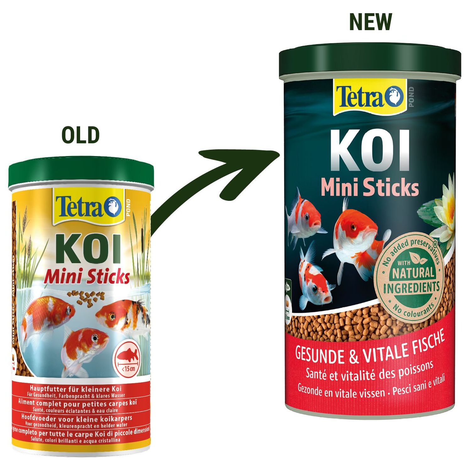 Молодые рыбки Кои активно растут за счет высокого содержания в Tetra Pond Koi Mini Sticks протеинов.