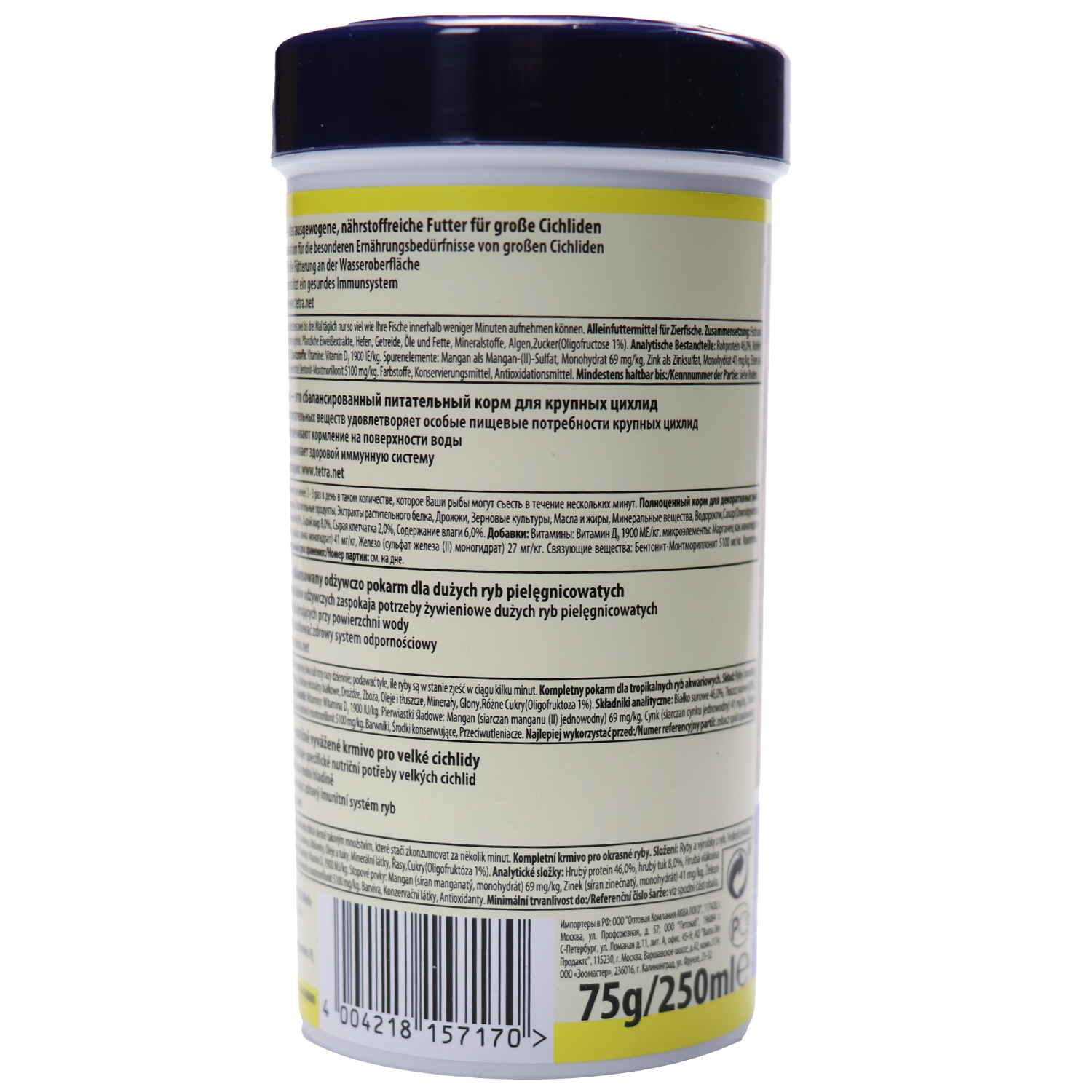 состав корма полностью соответствует потребностям организма цихлид в потреблении протеинов и специальных аминокислот