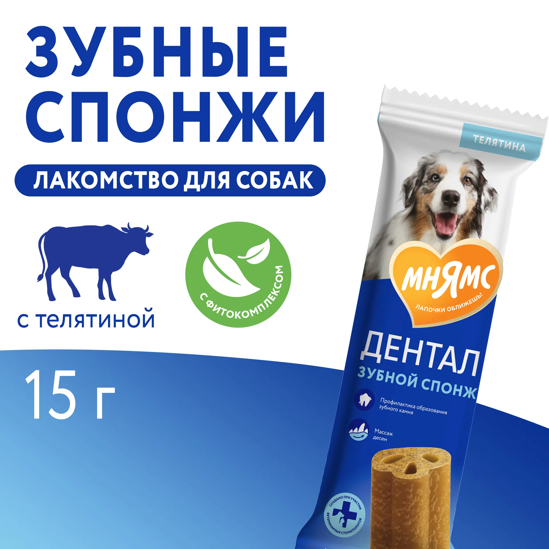 Лакомство Мнямс ДЕНТАЛ для собак "Зубные спонжи" с фитокомплексом и телятиной 15г