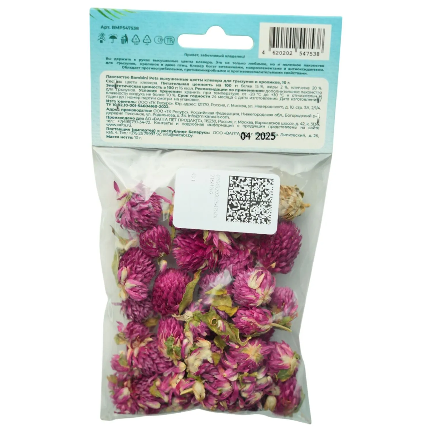 Лакомство Bambini Pets высушенные цветы клевера для грызунов и кроликов, 10 г.