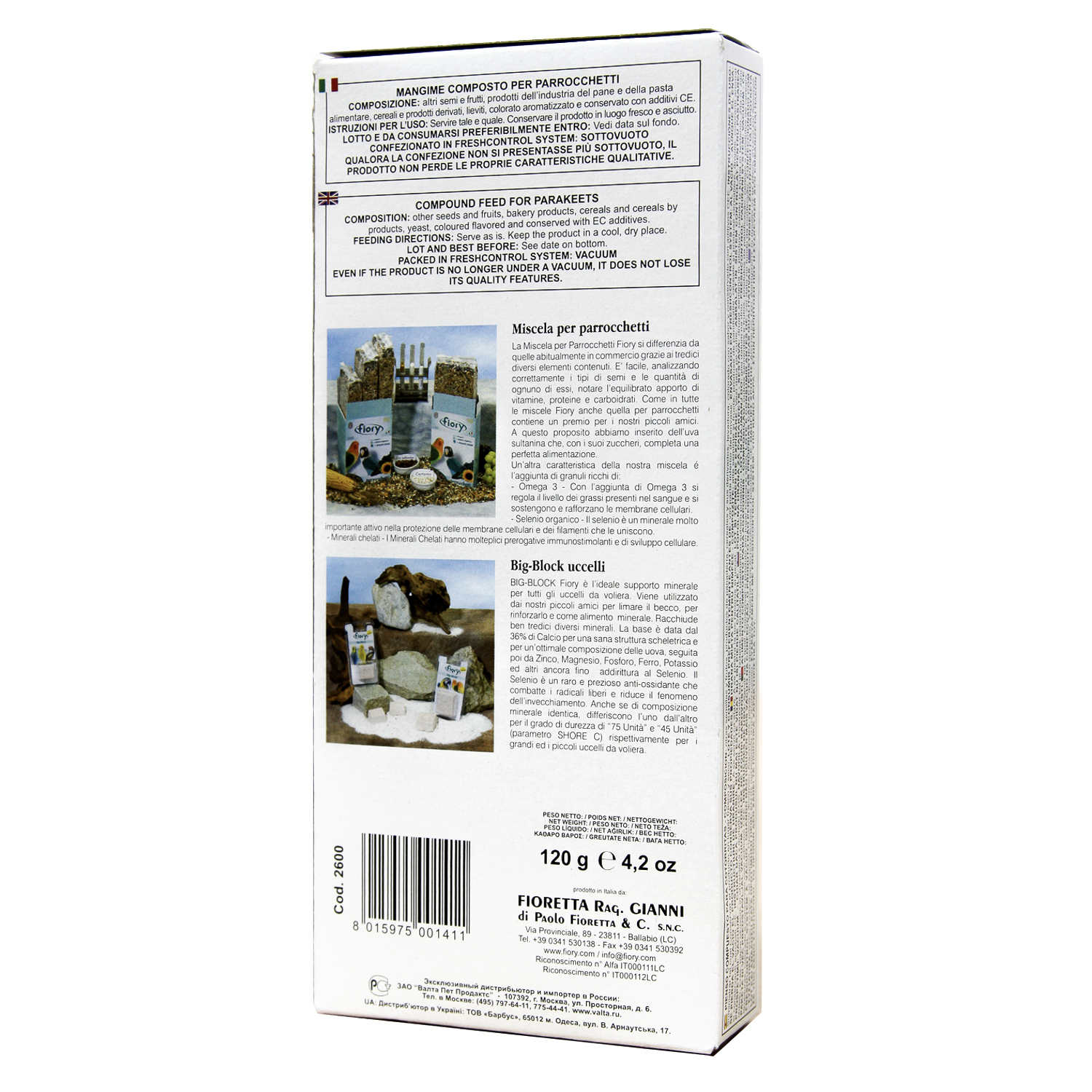 СОСТАВ: злаки и злаковые субпродукты, куриное яйцо 20,4%, семена масличных культур и маслосодержащих плодов и фруктов, сахар, семена и фрукты, пекарные продукты, растительные масла и жиры, клубни и их производные, пчелиный мед 0,85%, красители и ароматизаторы одобренные в ЕС.
