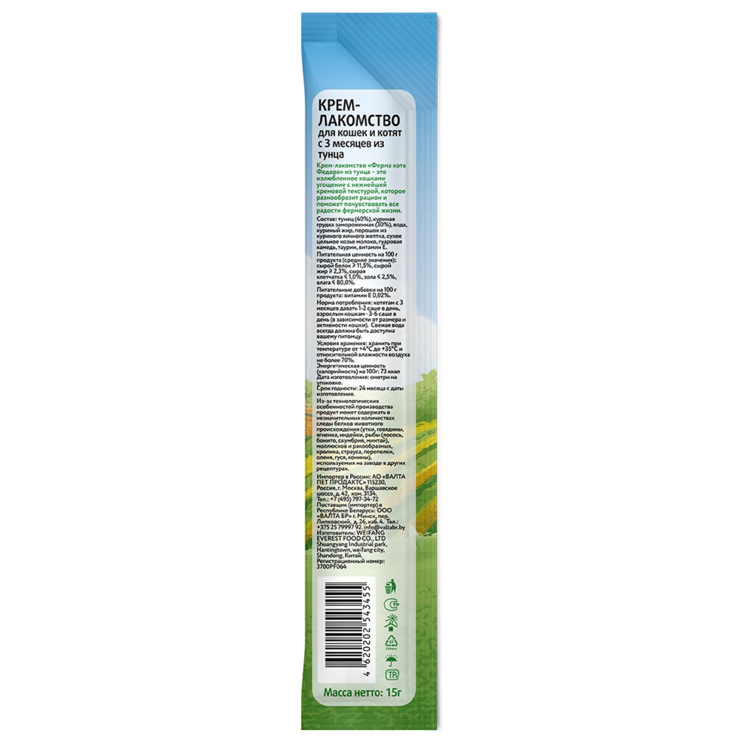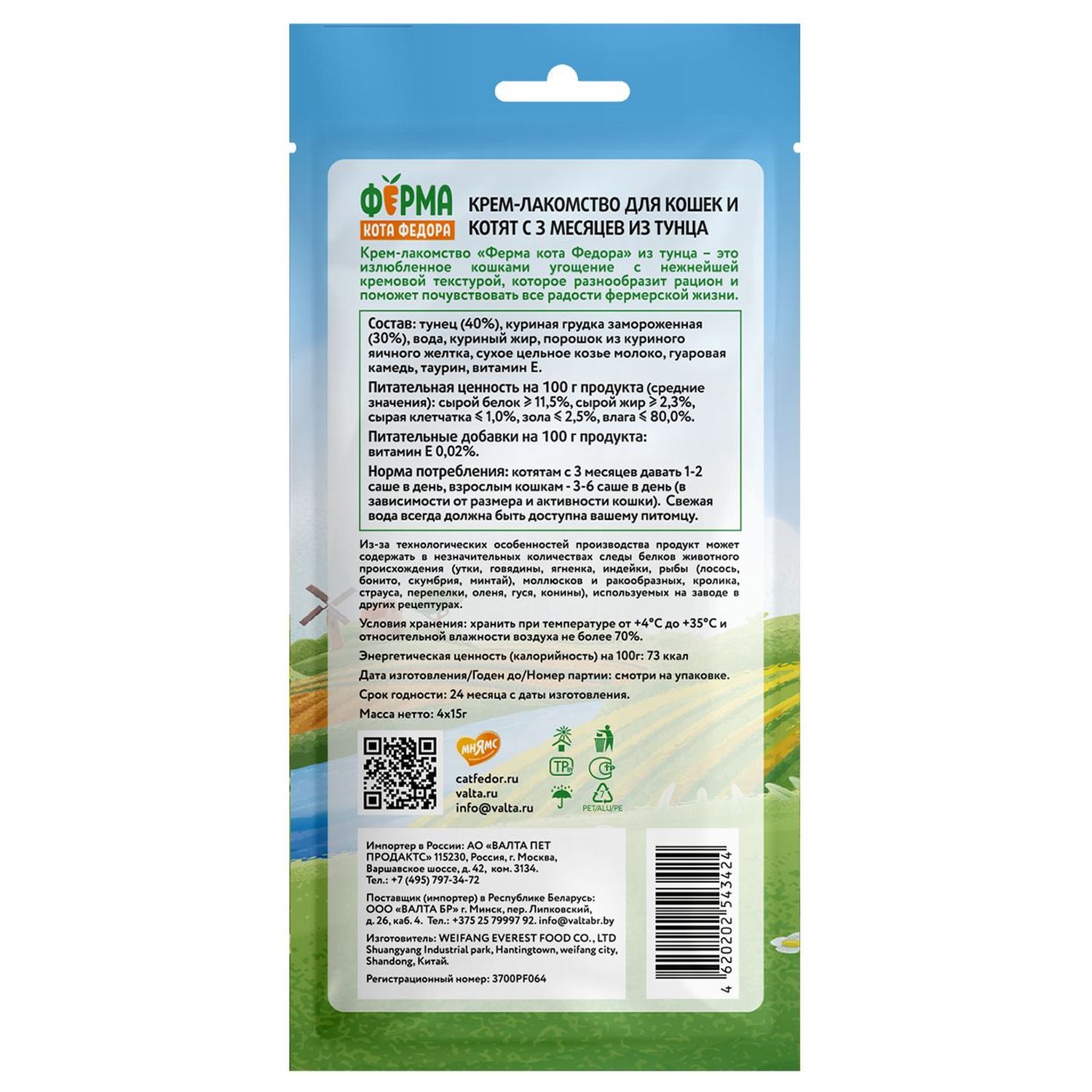 Крем-лакомство Ферма кота Федора для кошек и котят из тунца 4 шт х 15 г