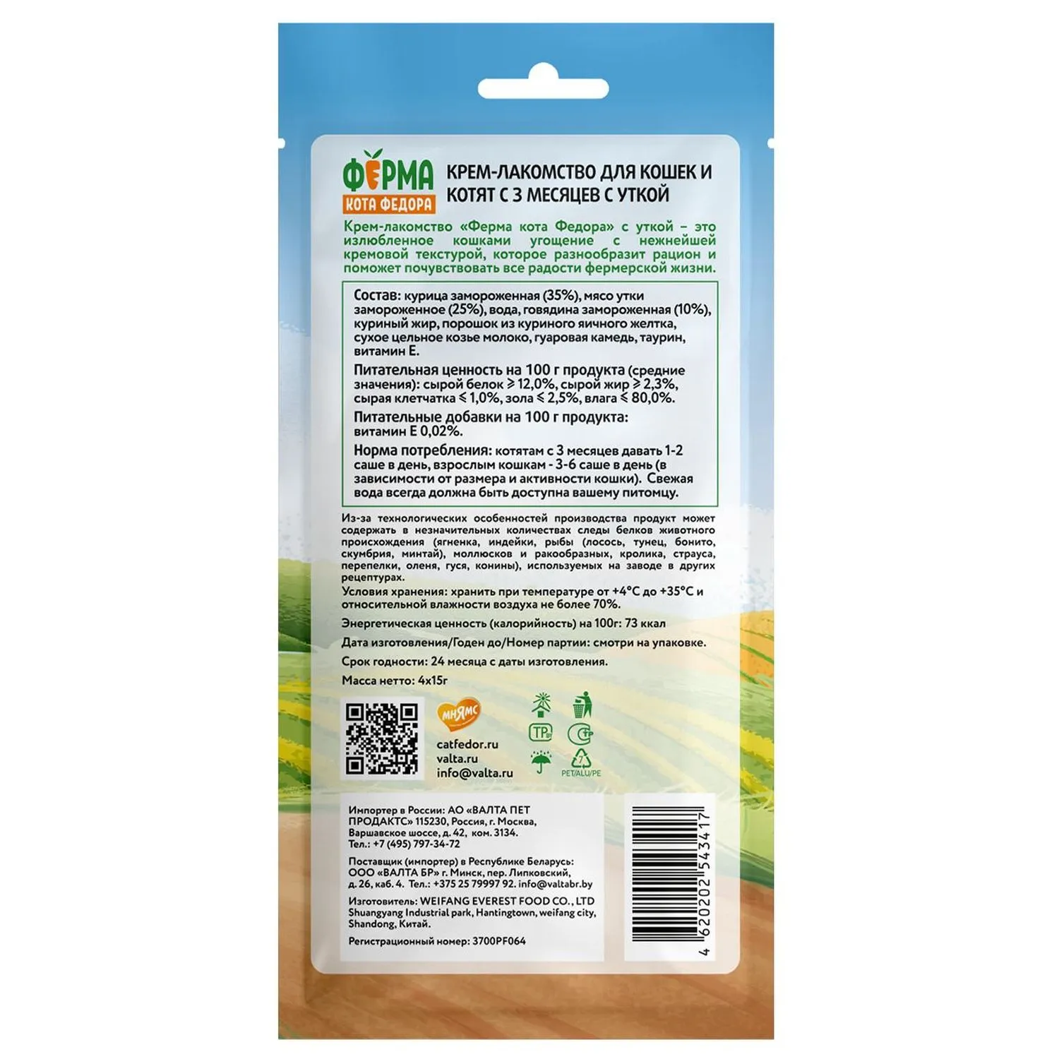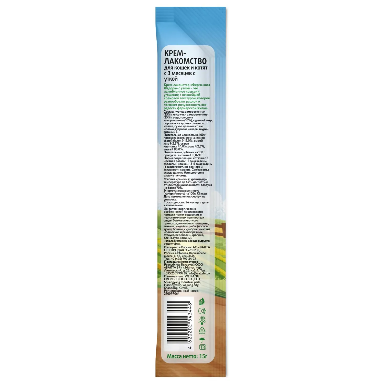Крем-лакомство Ферма кота Федора для кошек и котят с уткой 4 шт х 15 г