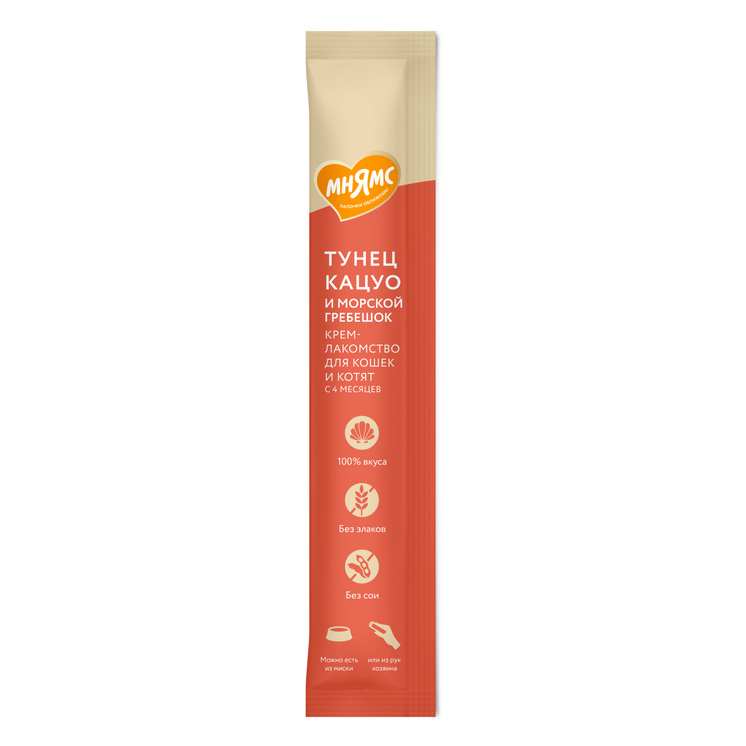 Крем-лакомство Мнямс для кошек с тунцом Кацуо и морским гребешком 15 г