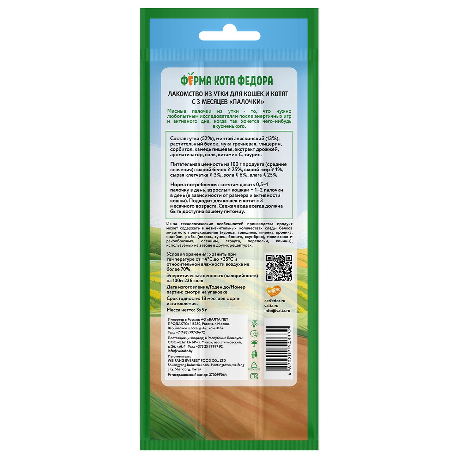 Лакомство Ферма кота Федора лакомые палочки для кошек и котят из утки 3 х 5 г