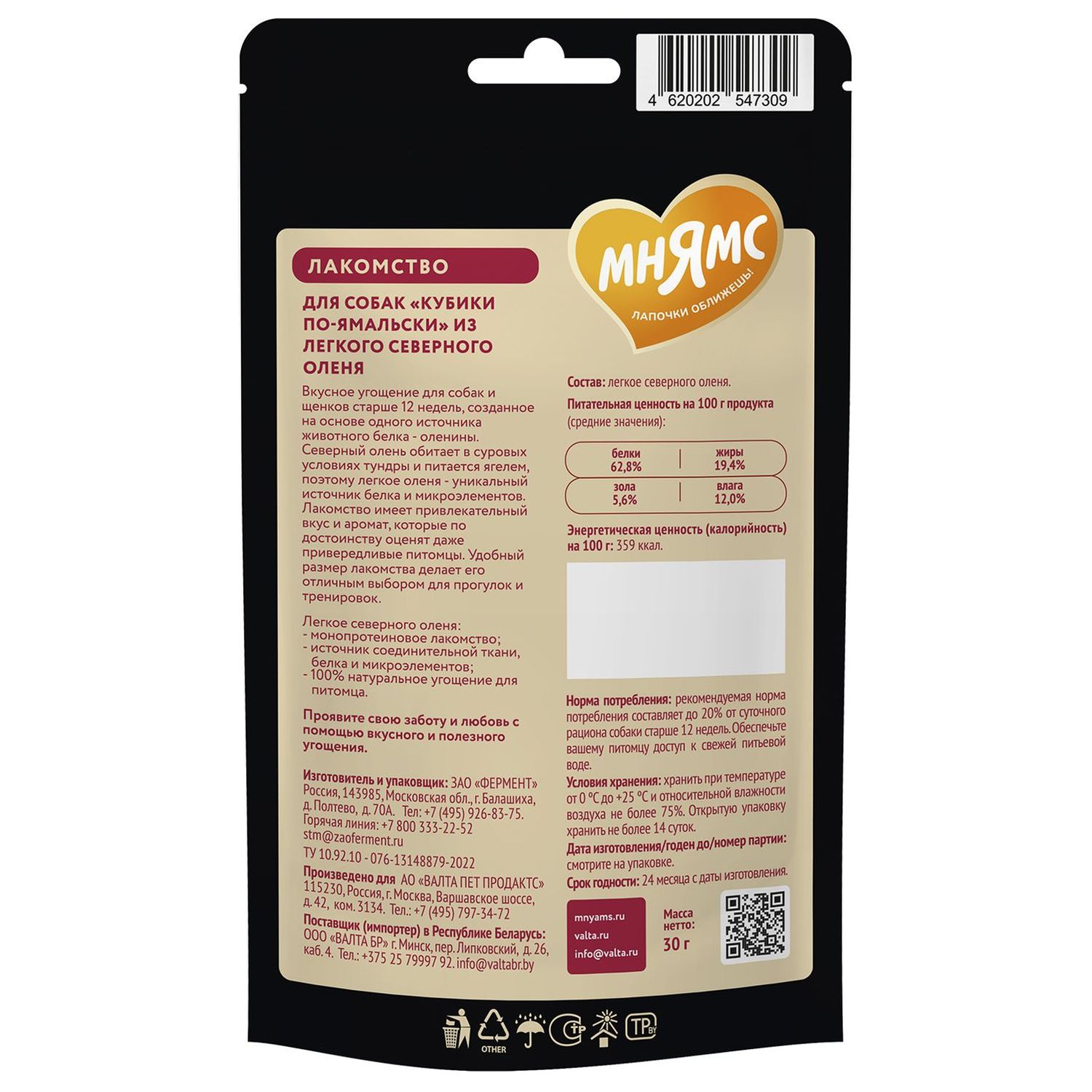 Лакомство Мнямс Деликатес «Кубики по-ямальски» из легкого северного оленя для собак 30 г
