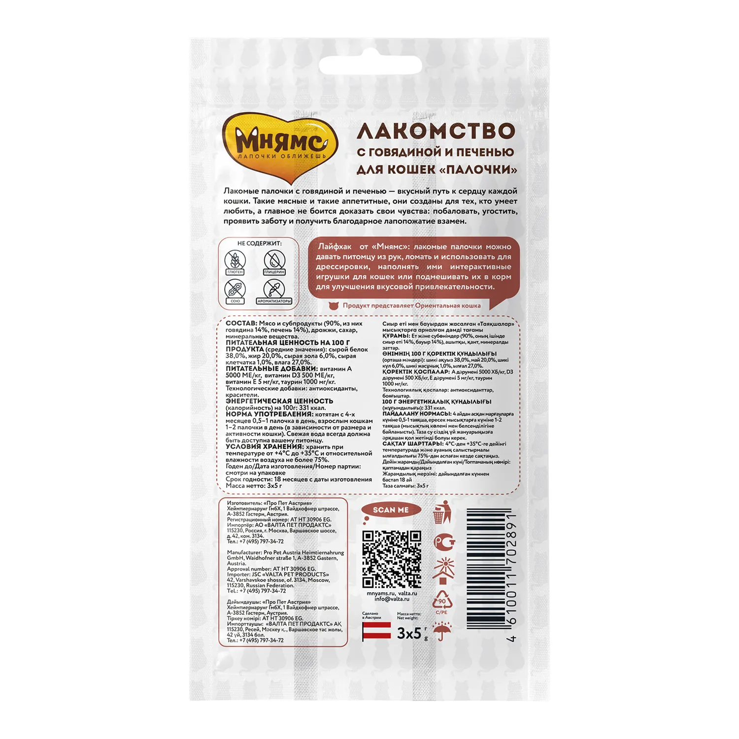 Лакомство Мнямс лакомые палочки 13,5 см для кошек с говядиной и печенью 3х5 г