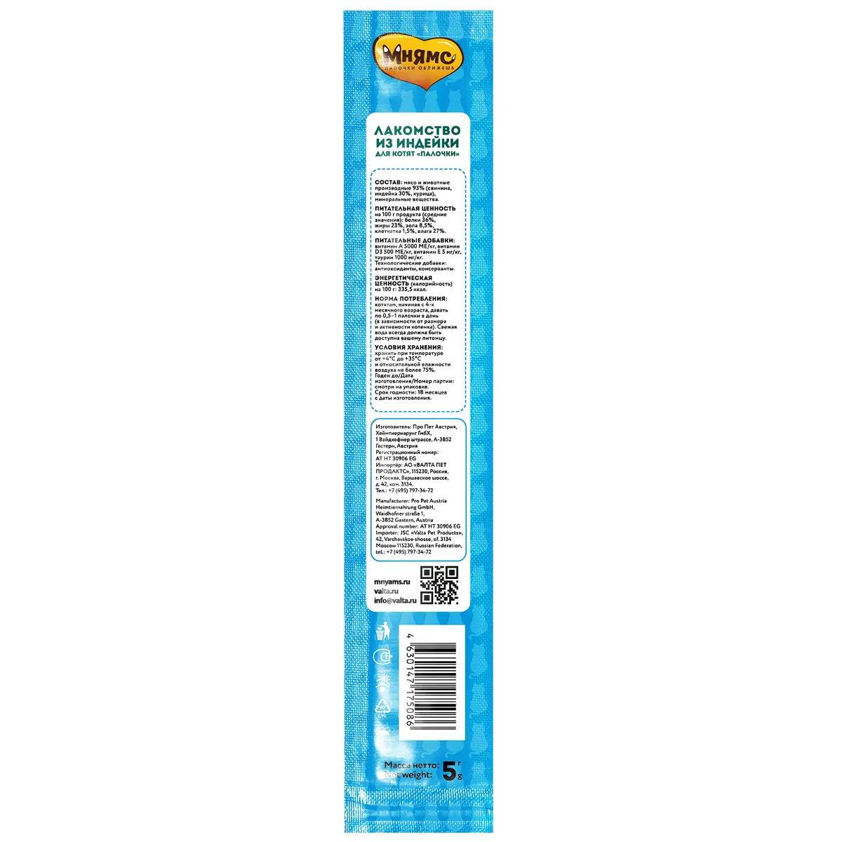 Лакомство Мнямс лакомые палочки 13,5 см для котят из индейки 10х5 г