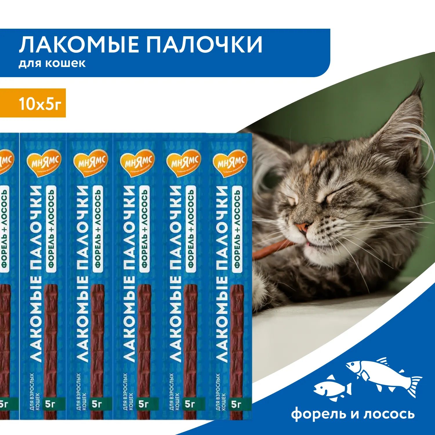 Лакомство Мнямс лакомые палочки для кошек с форелью и лососем 10х5 г