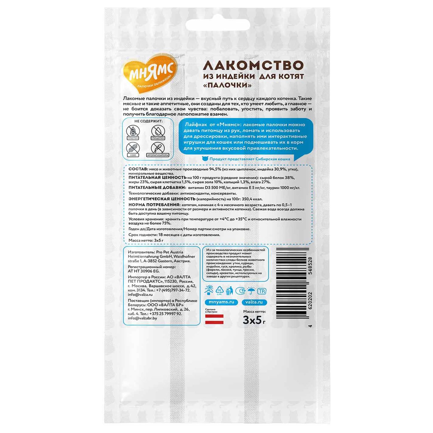 Лакомство Мнямс лакомые палочки для котят из индейки 3х5 г