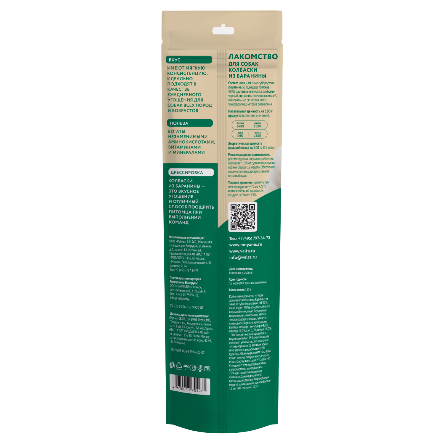 Колбаски из баранины – это вкусное угощение и отличный способ поощрить питомца при выполнении команд. Богаты незаменимыми аминокислотами, витаминами и минералами. Имеют мягкую консистенцию, идеально подходят в качестве ежедневного угощения для собак всех пород и возрастов.