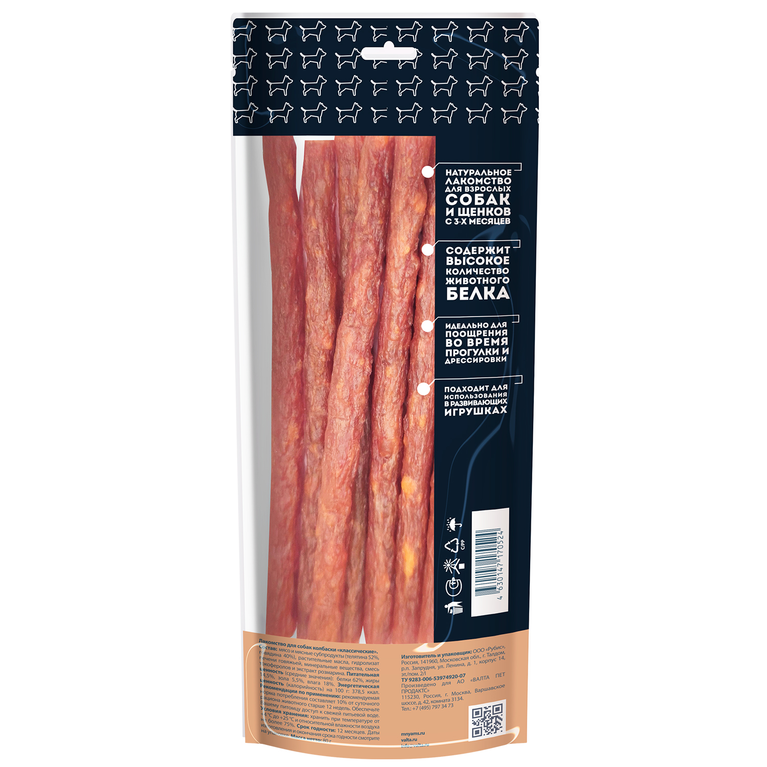 Мнямс лакомство для собак колбаски «классические» - вкусное и полезное лакомство с большим содержанием мяса для собак и щенков старше 3-х месяцев. Обладают высокой вкусовой привлекательностью, благотворно влияют на нервную и сосудистую системы, содержат розмарин- натуральный источник магния, калия, натрия, железа и фосфора. Идеально подходят в качестве ежедневного угощения и поощрения во время тренировок.