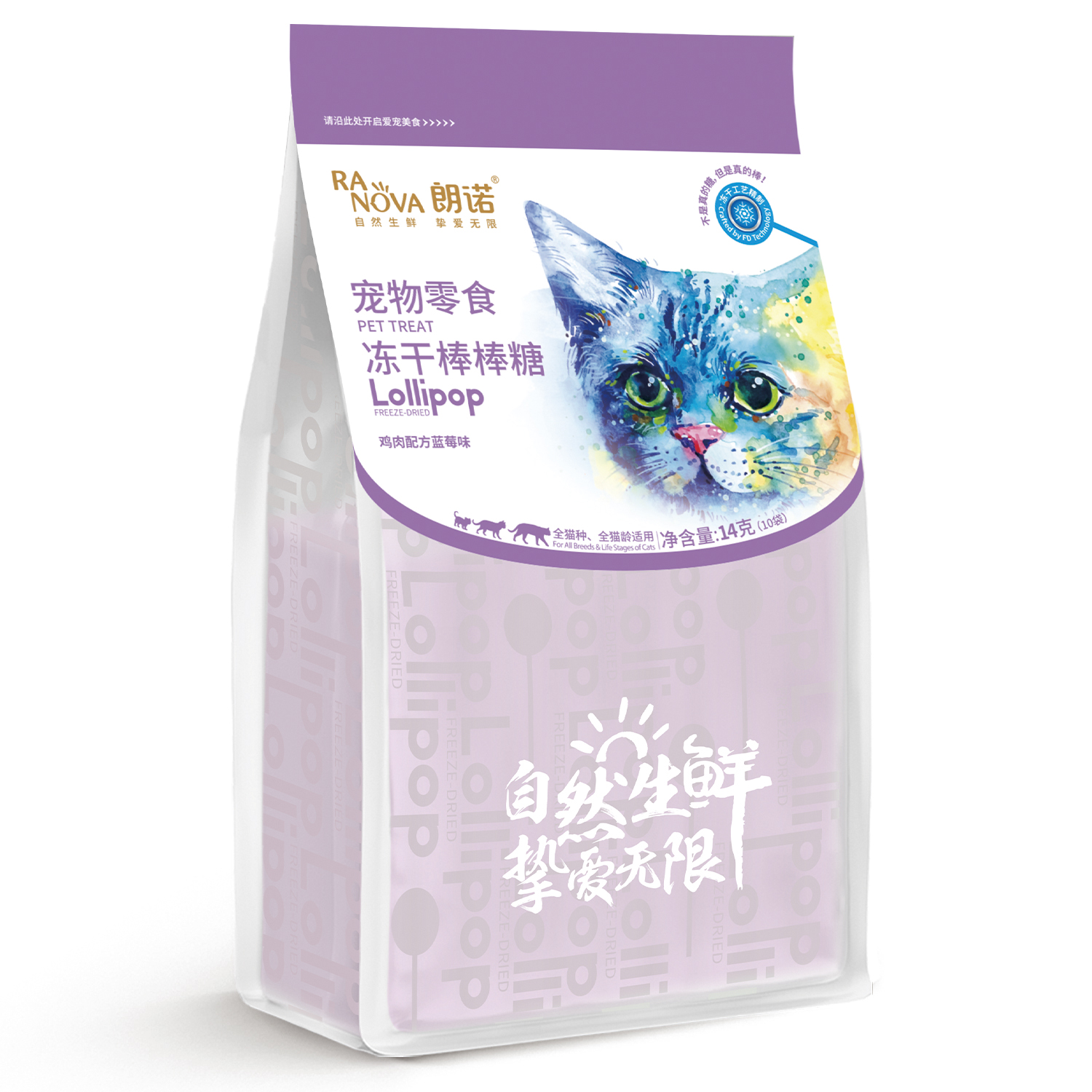 Лакомство Ranova для кошек CN сублимированное на палочке с черникой, 1,4 г х 10 шт