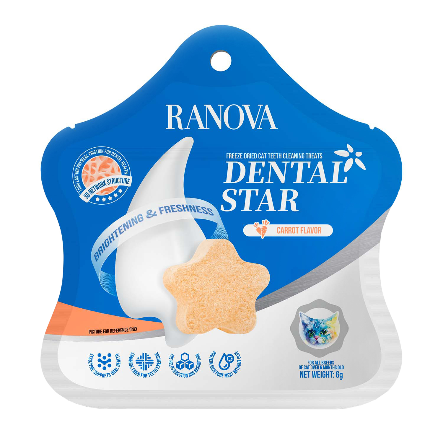 Лакомство Ranova для кошек сублимированное Звёздочка для зубов с курицей и морковью, 6 г