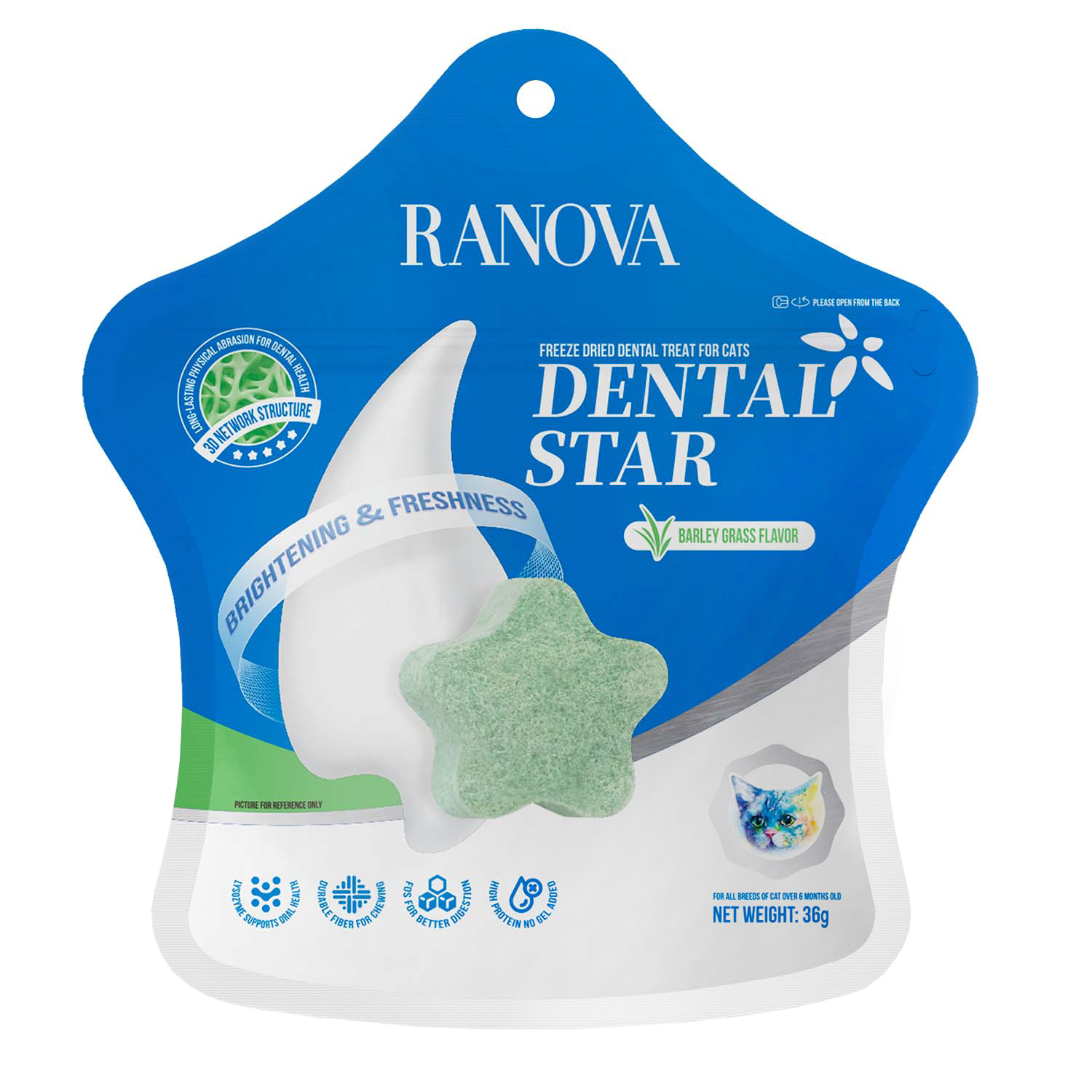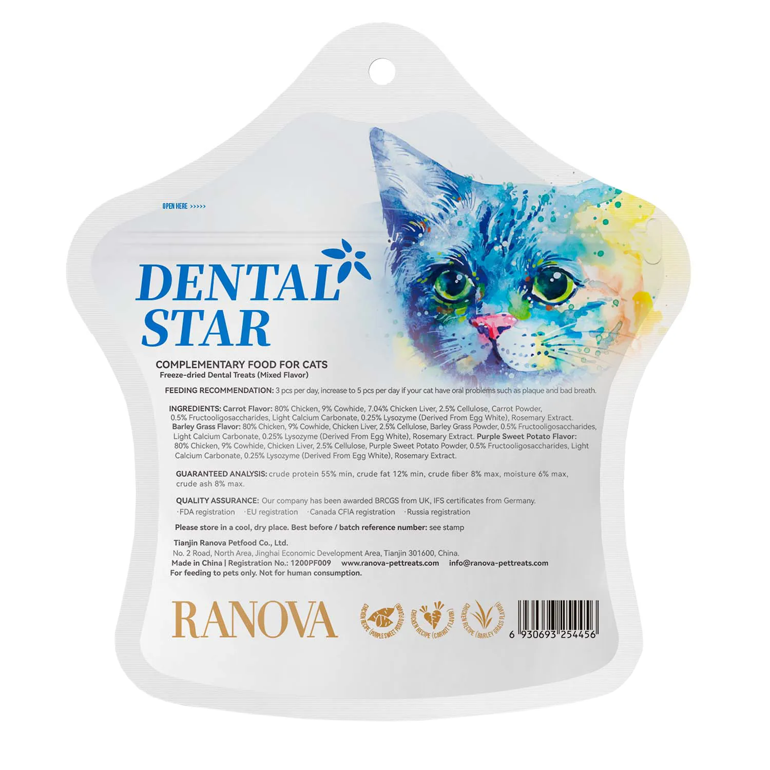 Лакомство Ranova для кошек сублимированное Звёздочка для зубов с курицей и ячменем, 36 г
