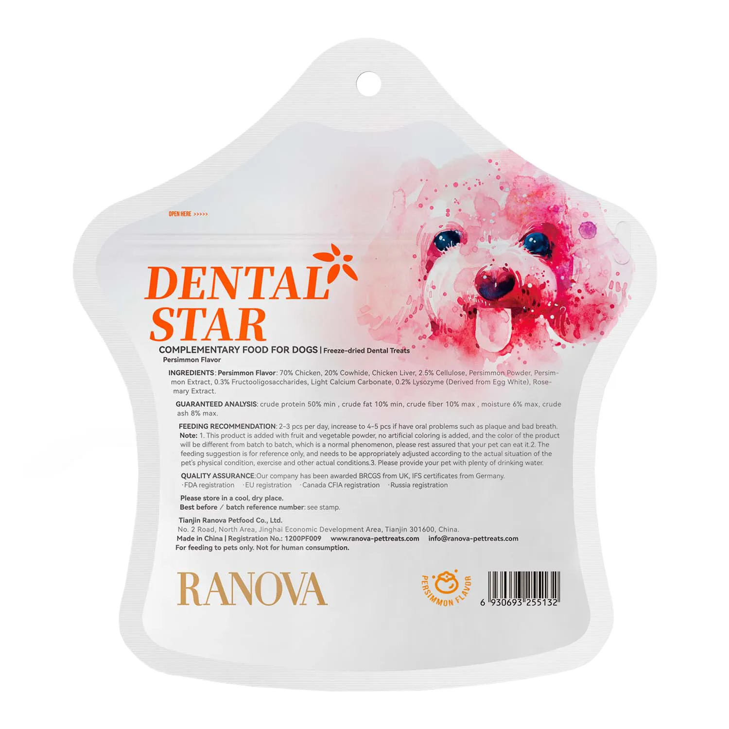 Лакомство Ranova для собак сублимированное Звёздочка для зубов с курицей и хурмой, 45 г
