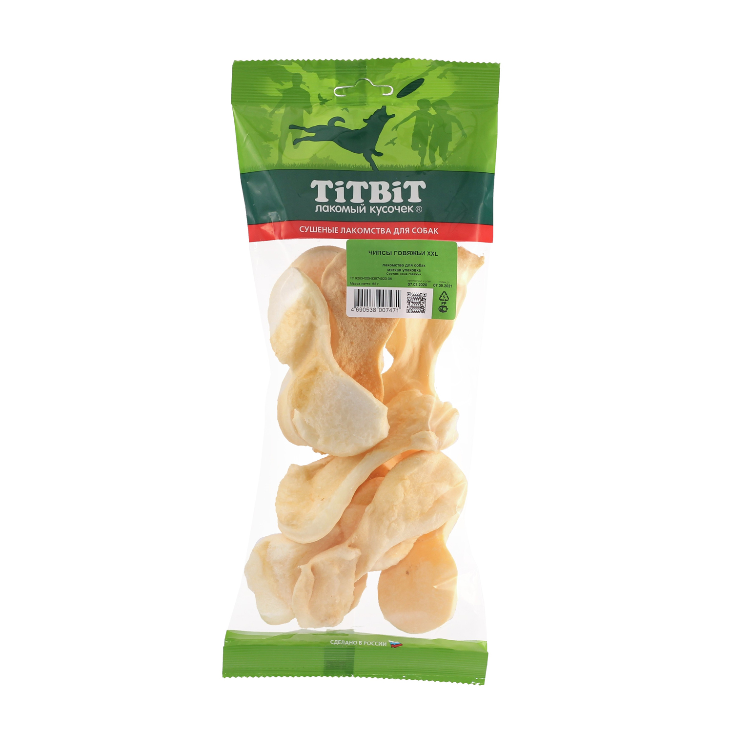 Лакомство TiTBiT Чипсы говяжьи XXL для собак 65 г