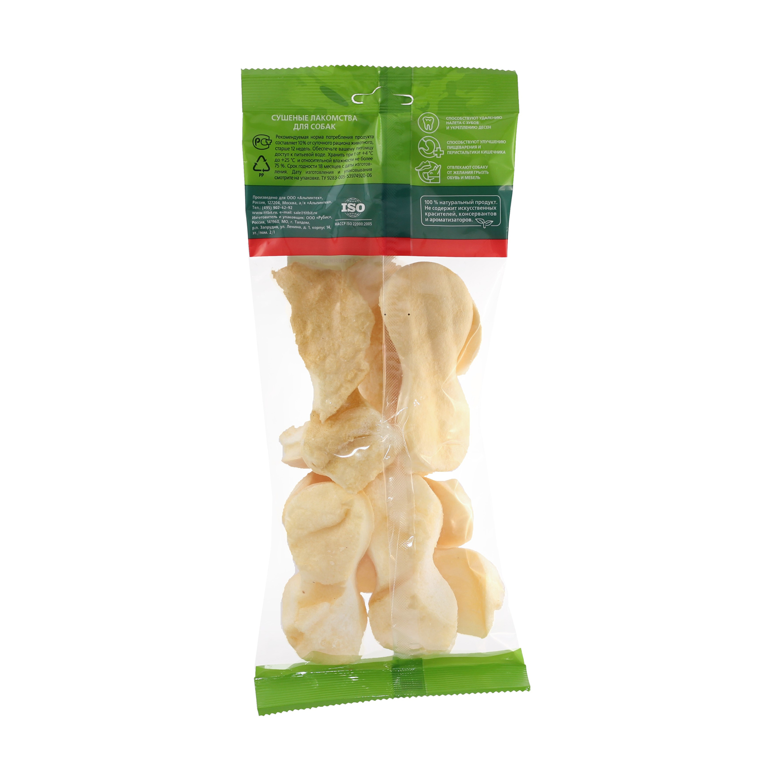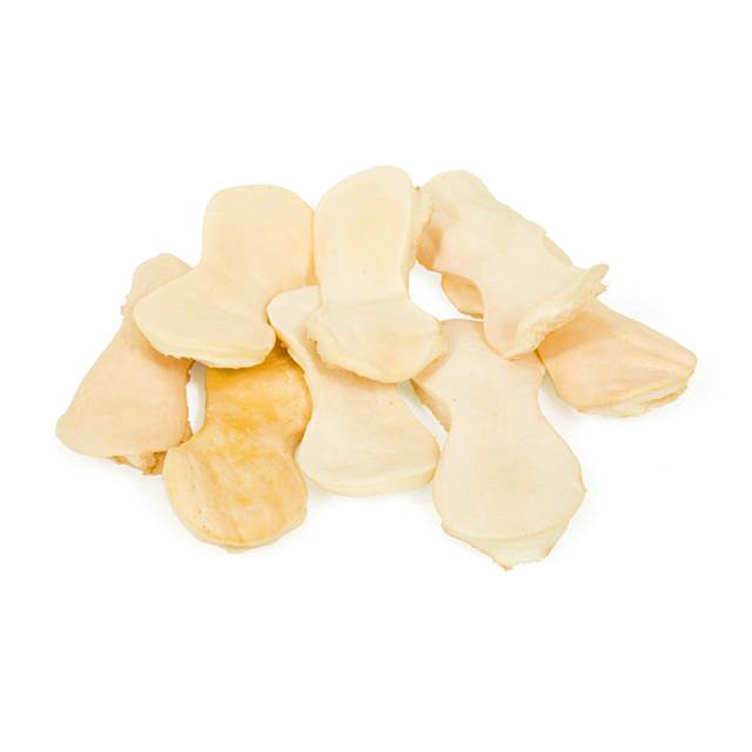 Высушенная говяжья кожа в форме чипсов. Упаковка содержит 10-12 штук. Благодаря большому содержанию аминокислот и коллагена положительно воздействует на хрящевую ткань, состояние кожи и шерсти собаки. Способствует снятию зубного камня. Хорошо развивает челюсти.