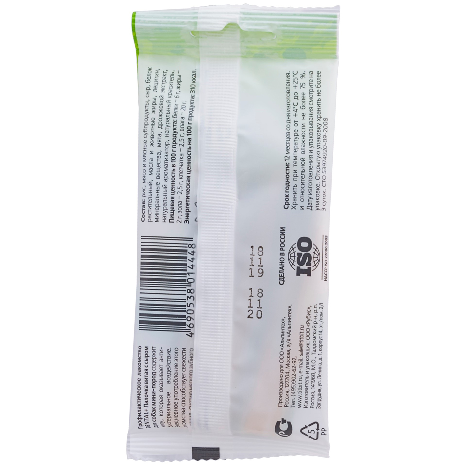 рис, мясо и мясные субпродукты, сыр, белок растительный, масла и животные жиры, лецитин, минеральные вещества, мята, дрожжевой экстракт, натуральный ароматизатор, натуральный краситель.Ингредиенты