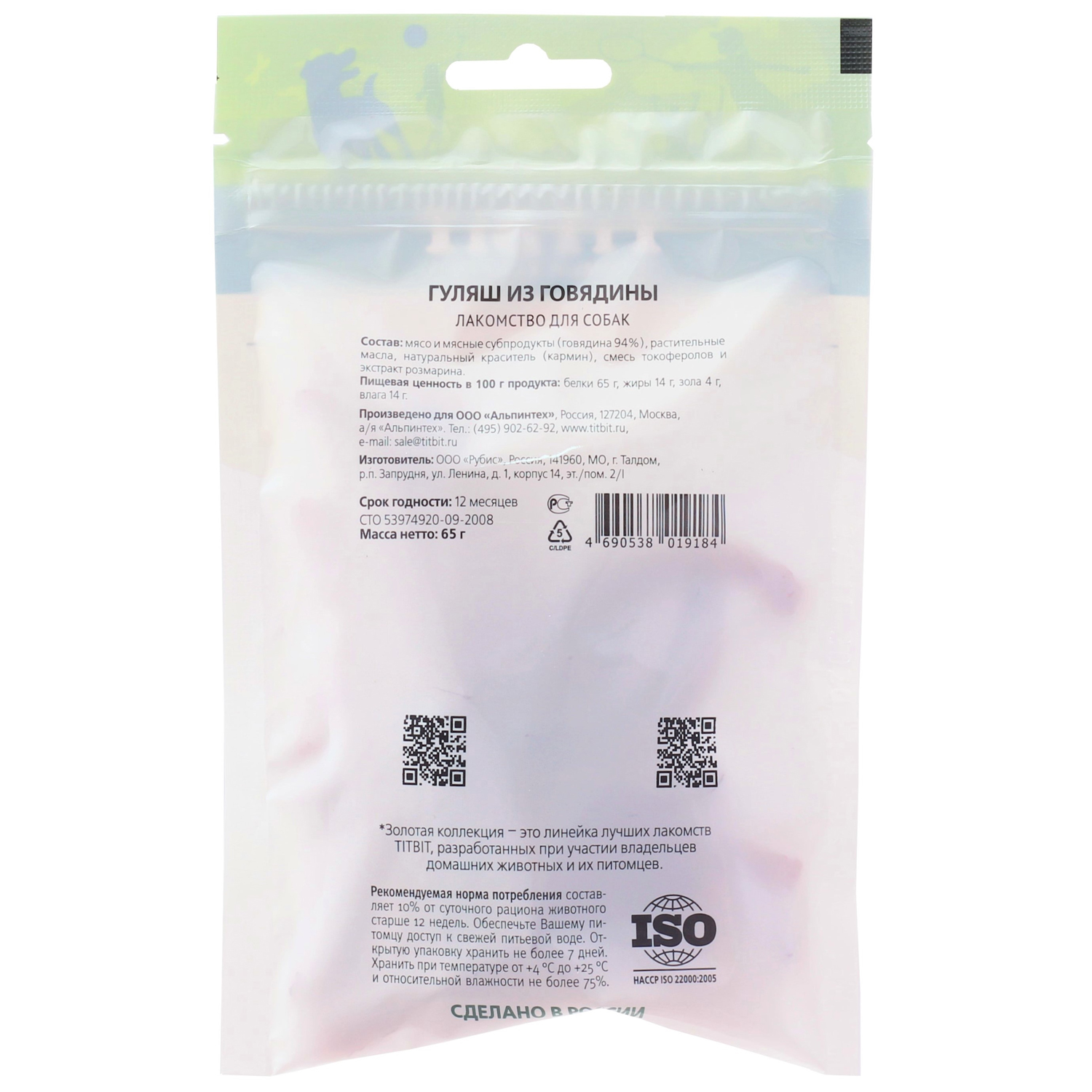 Лакомство TiTBiT Гуляш из говядины для собак Золотая коллекция 65 г