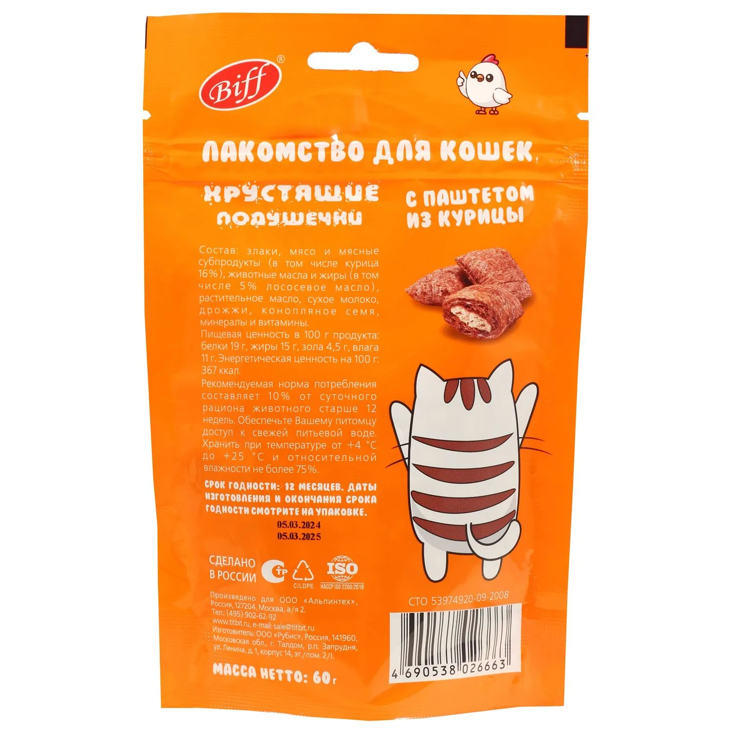 Лакомство TiTBiT Хрустящие подушечки Biff для кошек с паштетом из курицы 60 г