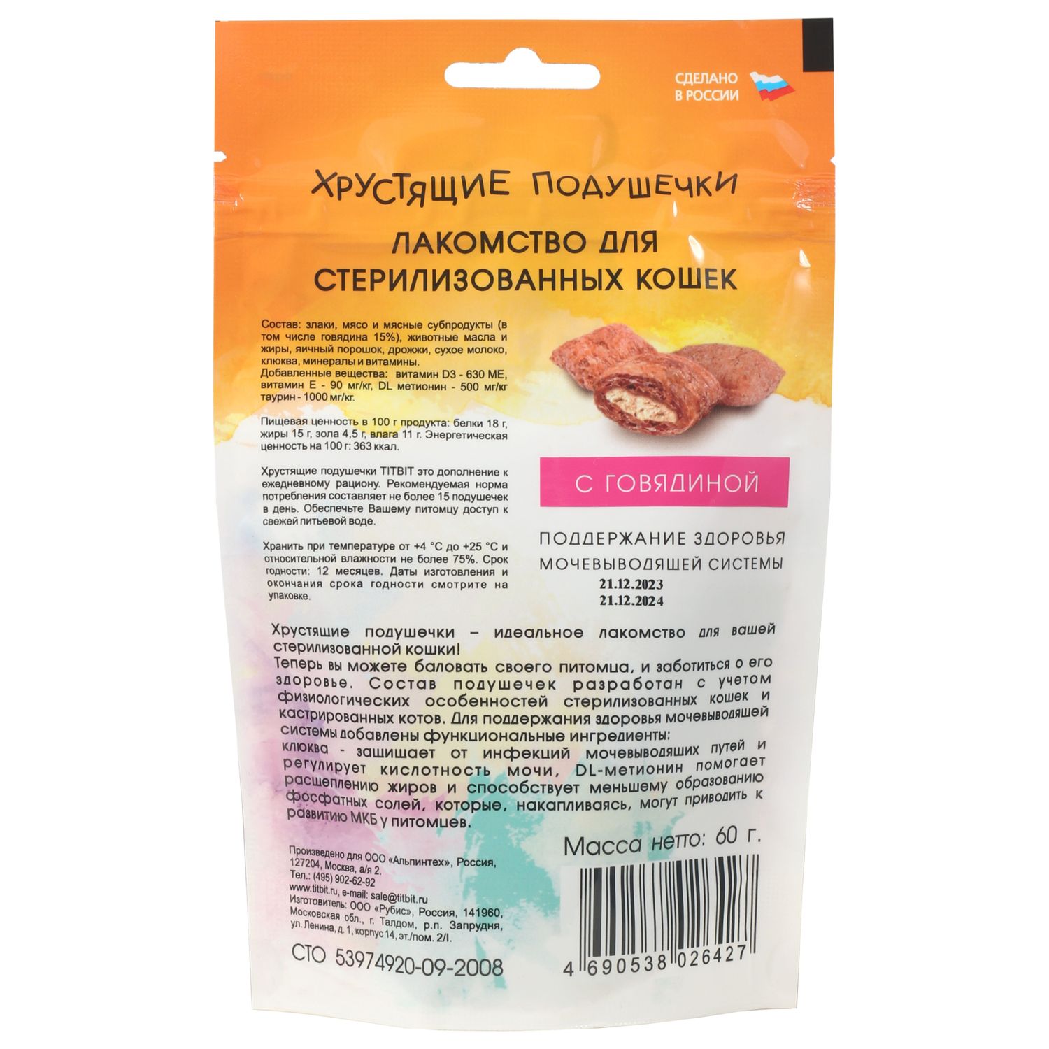 Лакомство TiTBiT Хрустящие подушечки для стерилизованных кошек с говядиной 60 г
