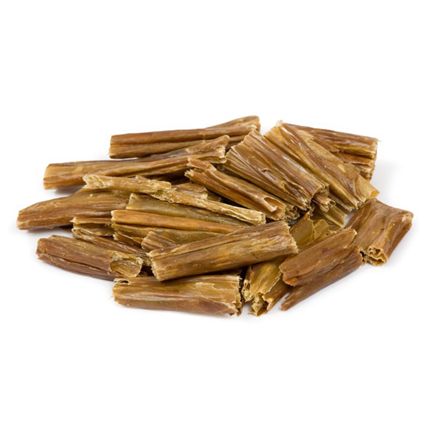 Высушенные порезанные на отрезки 3-4 см говяжьи кишки. Легкоусвояемое лакомство, богатое витаминами и ферментами микрофлоры кишечника крупного рогатого скота. Имеют большую энергетическую ценность из-за повышенного содержания жира. Богаты переваримыми протеинами, которые содержат все незаменимые аминокислоты и потому усваиваются на 90-95%. Содержат минеральные вещества в большем количестве, чем все остальные продукты (в том числе кальций, магний и фосфор), жирорастворимые витамины, а также водорастворимые витамины. Очищает зубы у мелких пород собак, продукт полезен для стимуляции пищеварения.