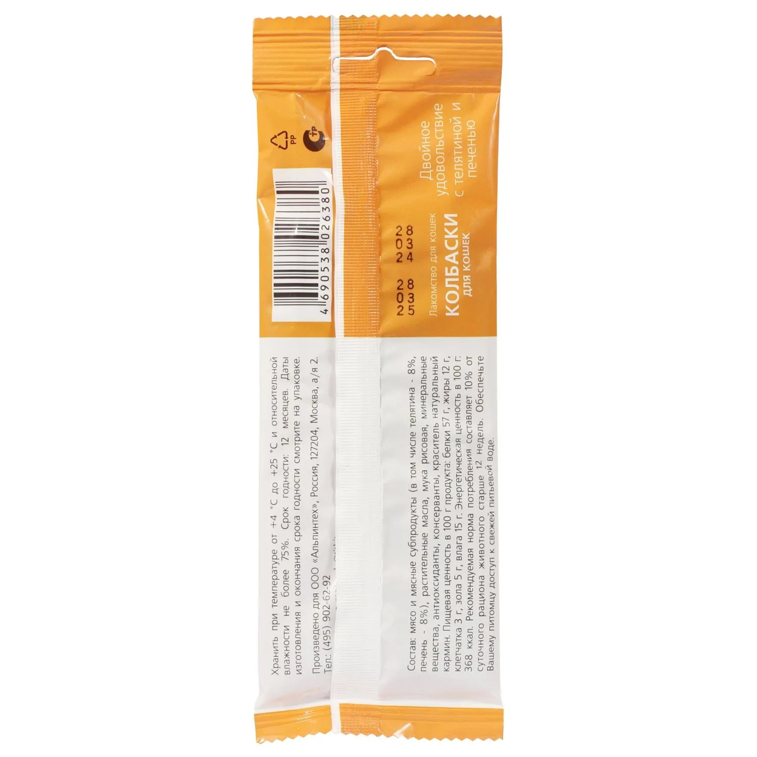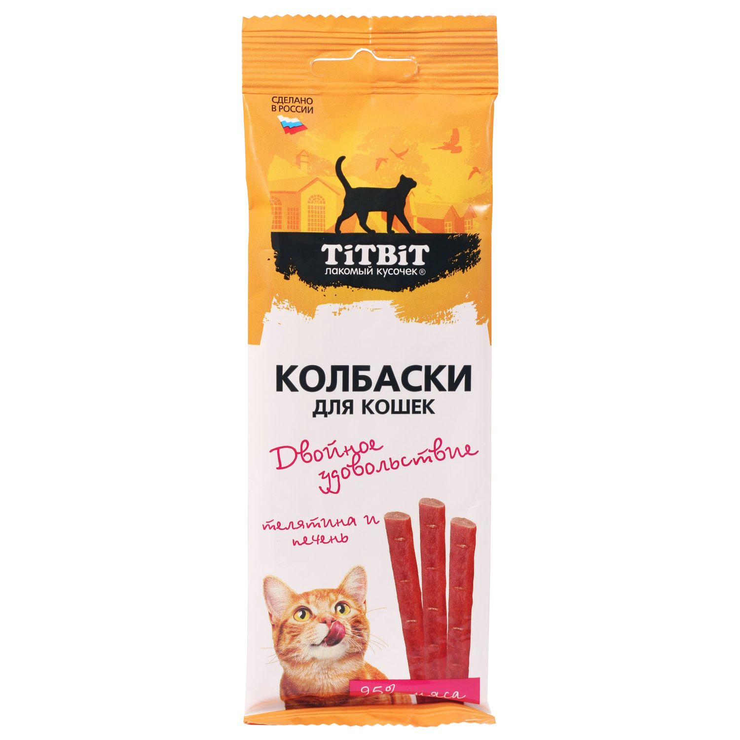 Лакомство TiTBiT Колбаски для кошек Двойное удовольствие с телятиной и печенью 45 г