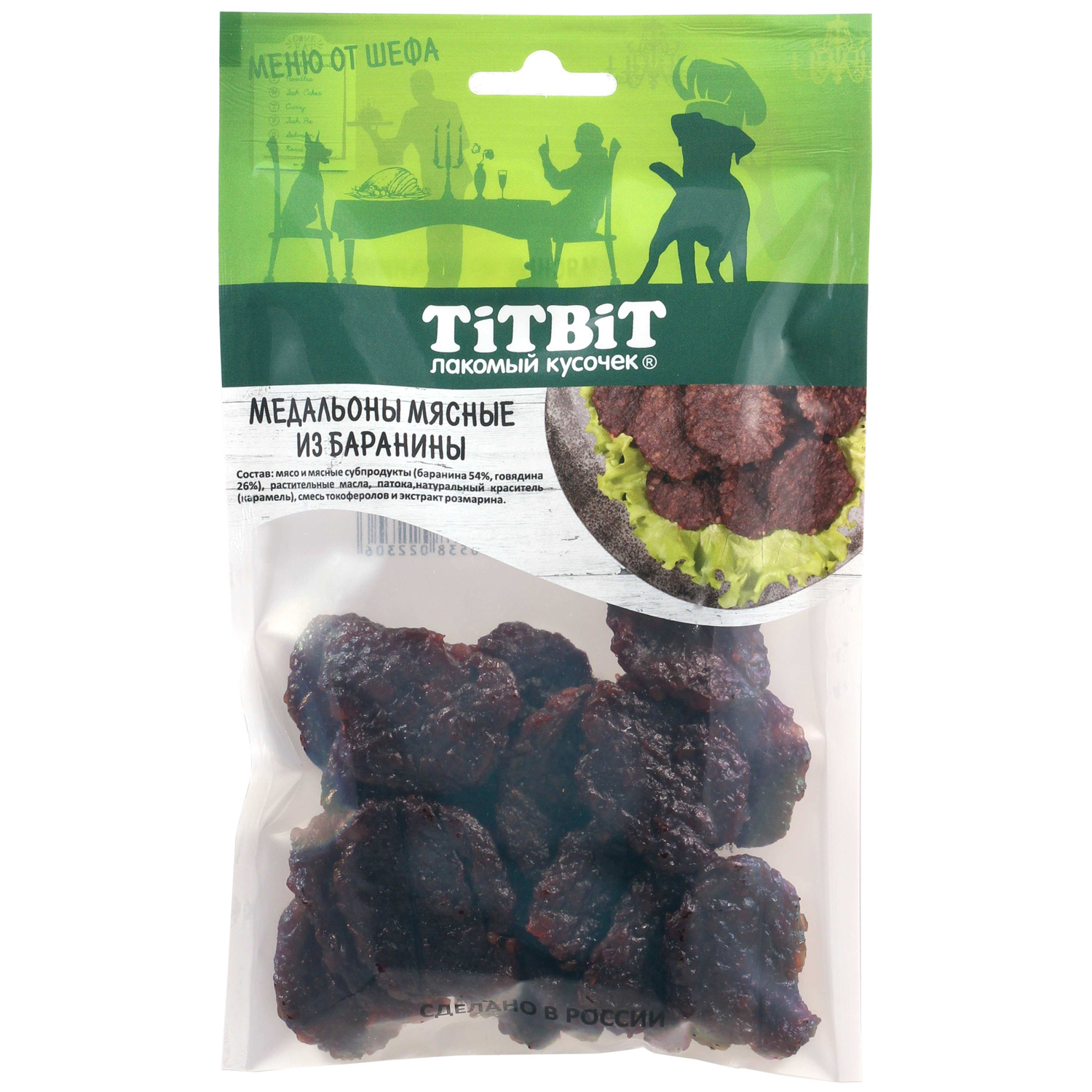 Лакомство TiTBiT Медальоны мясные для собак из баранины Меню от Шефа 80 г