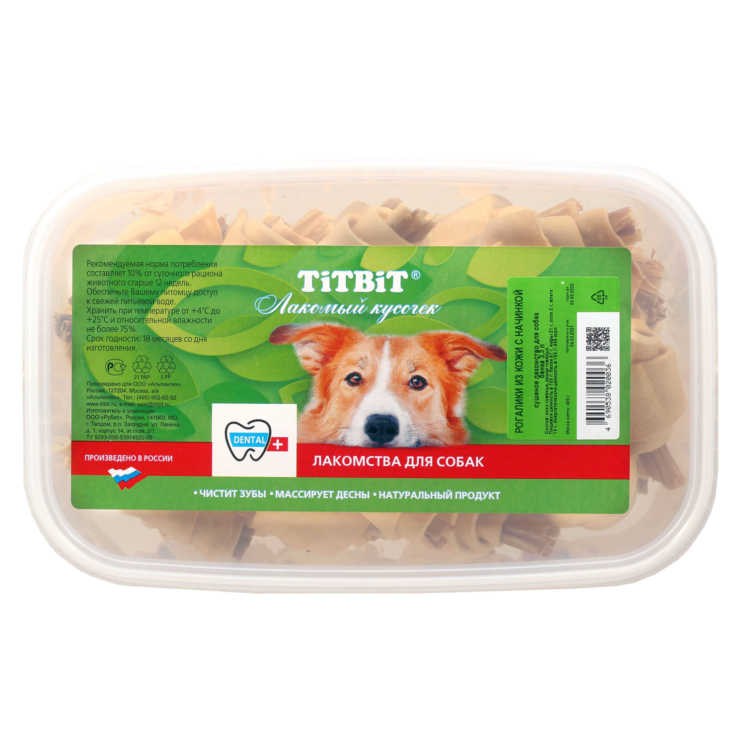 Лакомство TiTBiT Рогалики для собак из кожи с начинкой - банка пласт. 3.3 л 400 г
